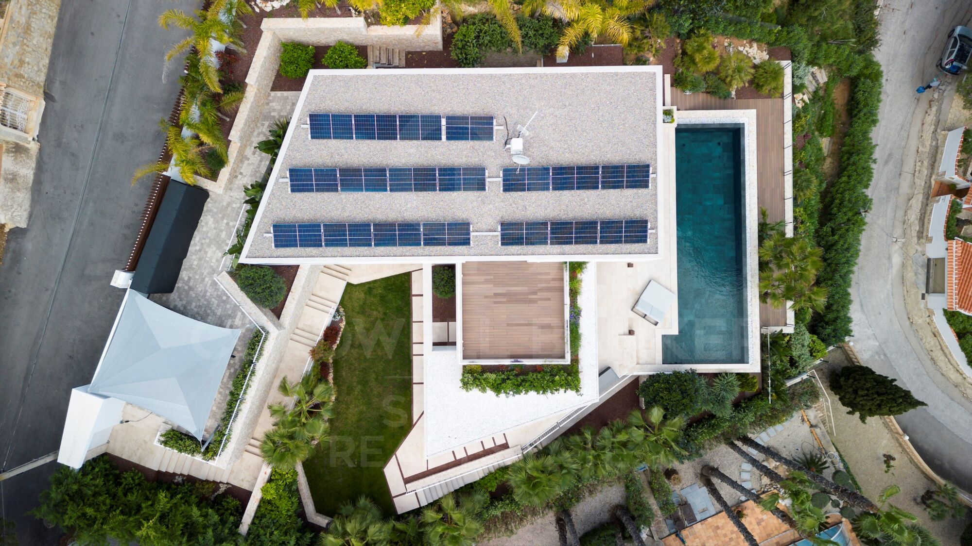 Ubicada en una parcela de 1.050 m² y con una superficie construida de 467 m², la villa cuenta con ascensor en todas las plantas y permite el acceso directo en coche, sin necesidad de escaleras. Esta vivienda inteligente incorpora un sistema fotovoltaico, persianas eléctricas, cortinas automatizadas, sistema de seguridad y calefacción por suelo radiante con control individual, además de calefacción central y aire acondicionado. La vivienda cuenta con una calificación energética A.