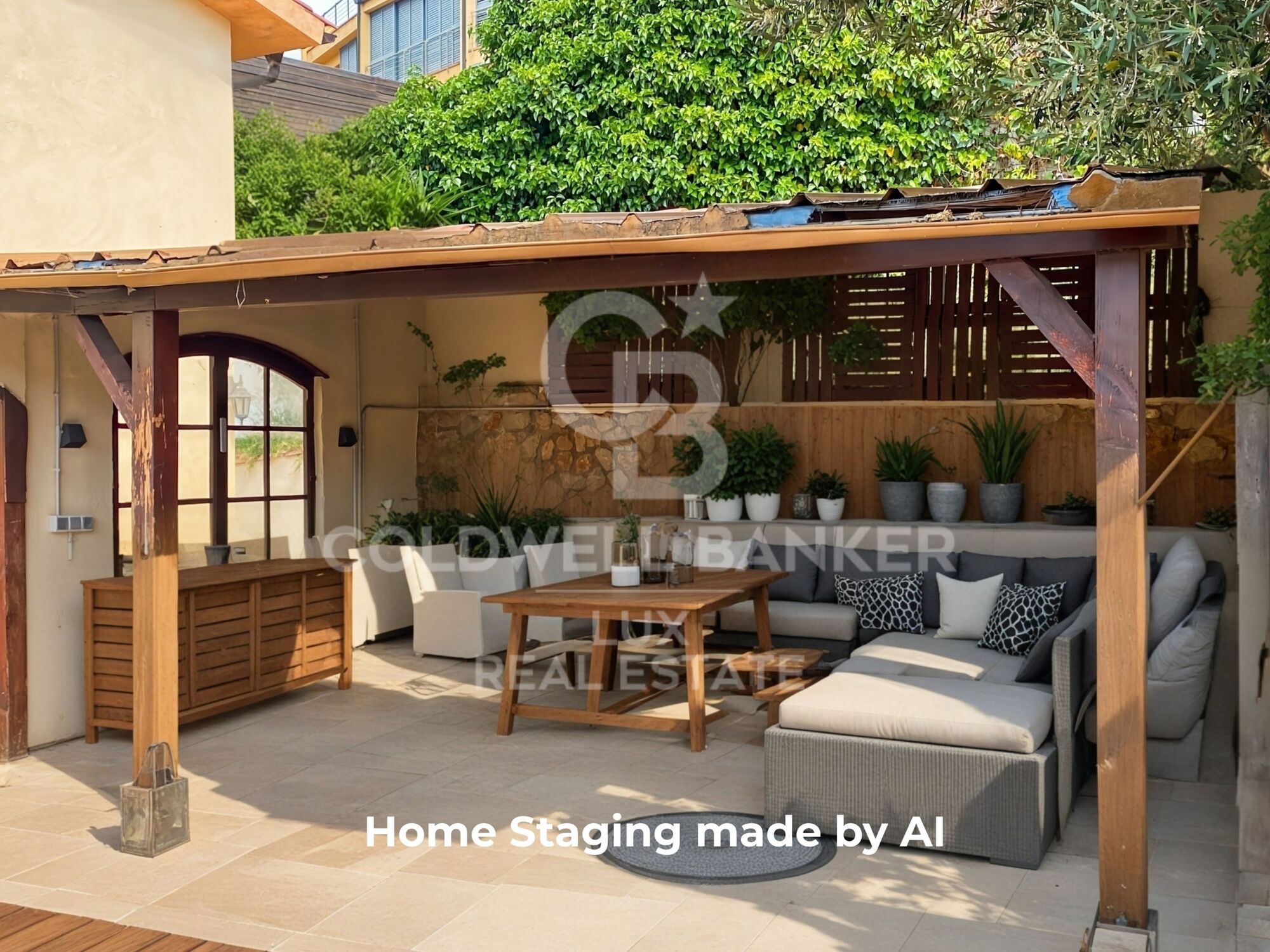La propiedad está orientada al sur y está bien protegida de la Tramontana. Dispone de varias terrazas amplias, jardín privado, zona de barbacoa y un amplio garaje de 82 m² con aseo.