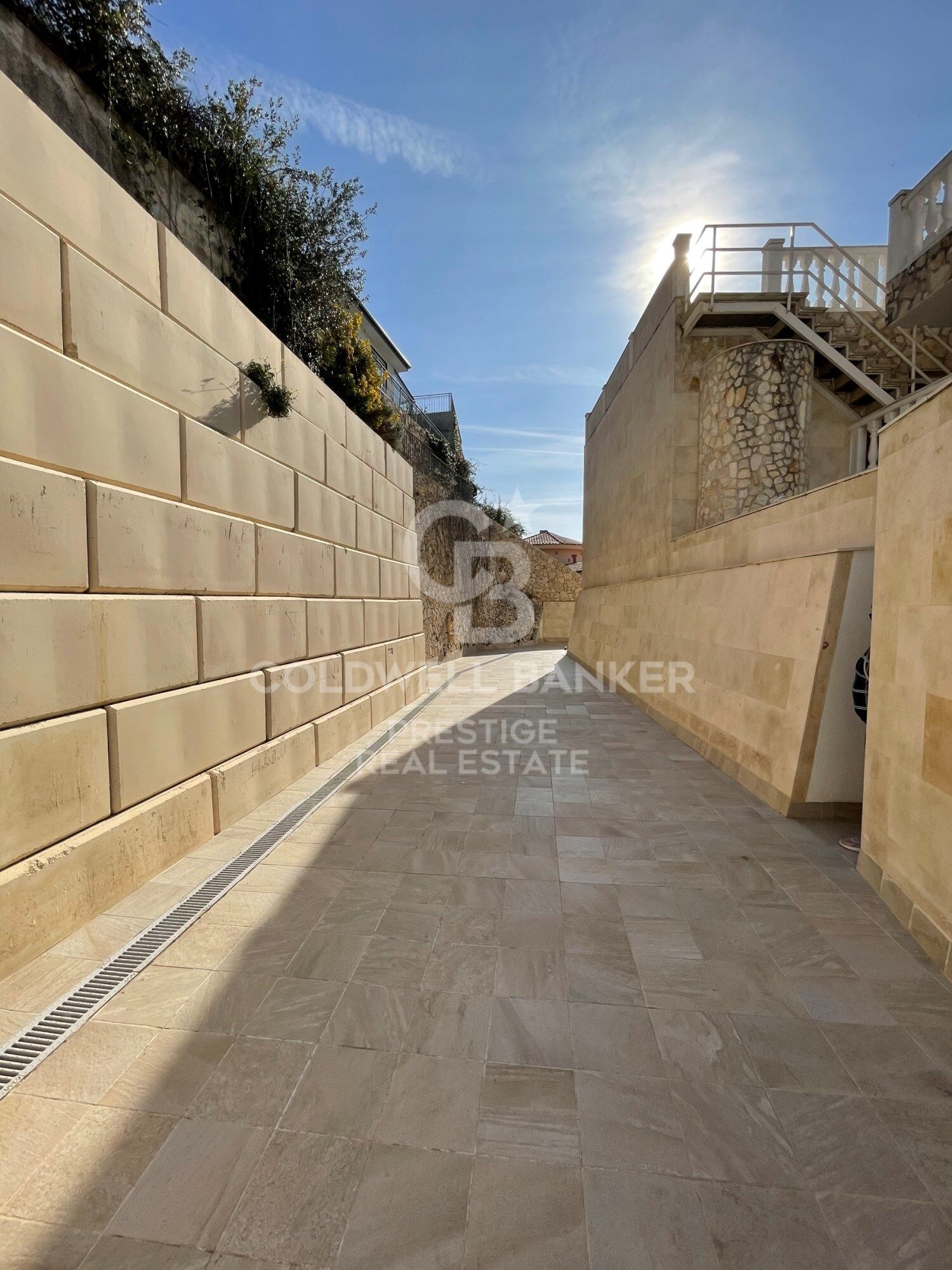 La casa ha sido completamente renovada con paredes de color crema claro con estuco veneciano y por la noche tiene una elegante iluminación. En la parte exterior encontramos una piscina y una glorieta con un sofá, decorada con columnas de mármol y estatuas.
