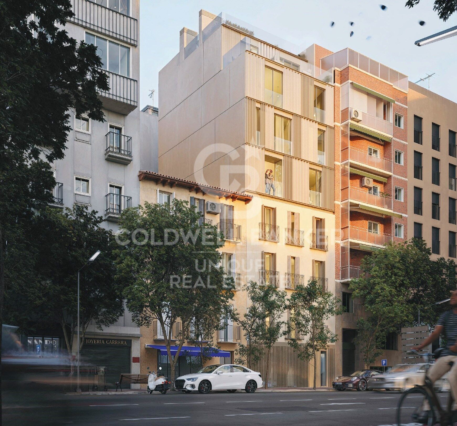 Un edificio con mucho carácter, clásico y vanguardista con una fachada en las que en sus tres primeras plantas se conservan añadiendo un levante con un lenguaje propio por su composición y acabados. Excelencia contemporánea.