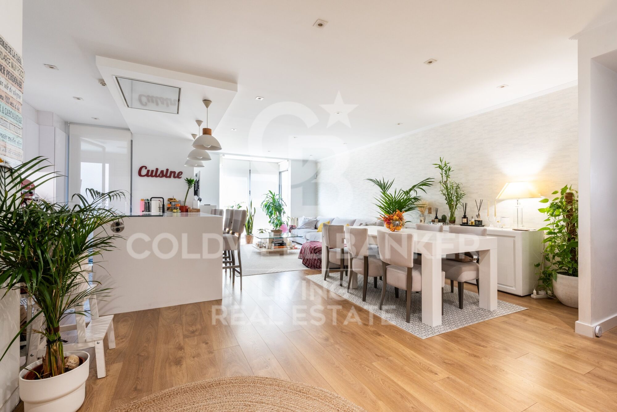 La cocina, de diseño contemporáneo, cuenta con zona de office y está totalmente equipada, con mobiliario a medida y amplias superficies de trabajo. Además, dispone de zona de lavandería y tendedero cubierto con ventilación natural al exterior.