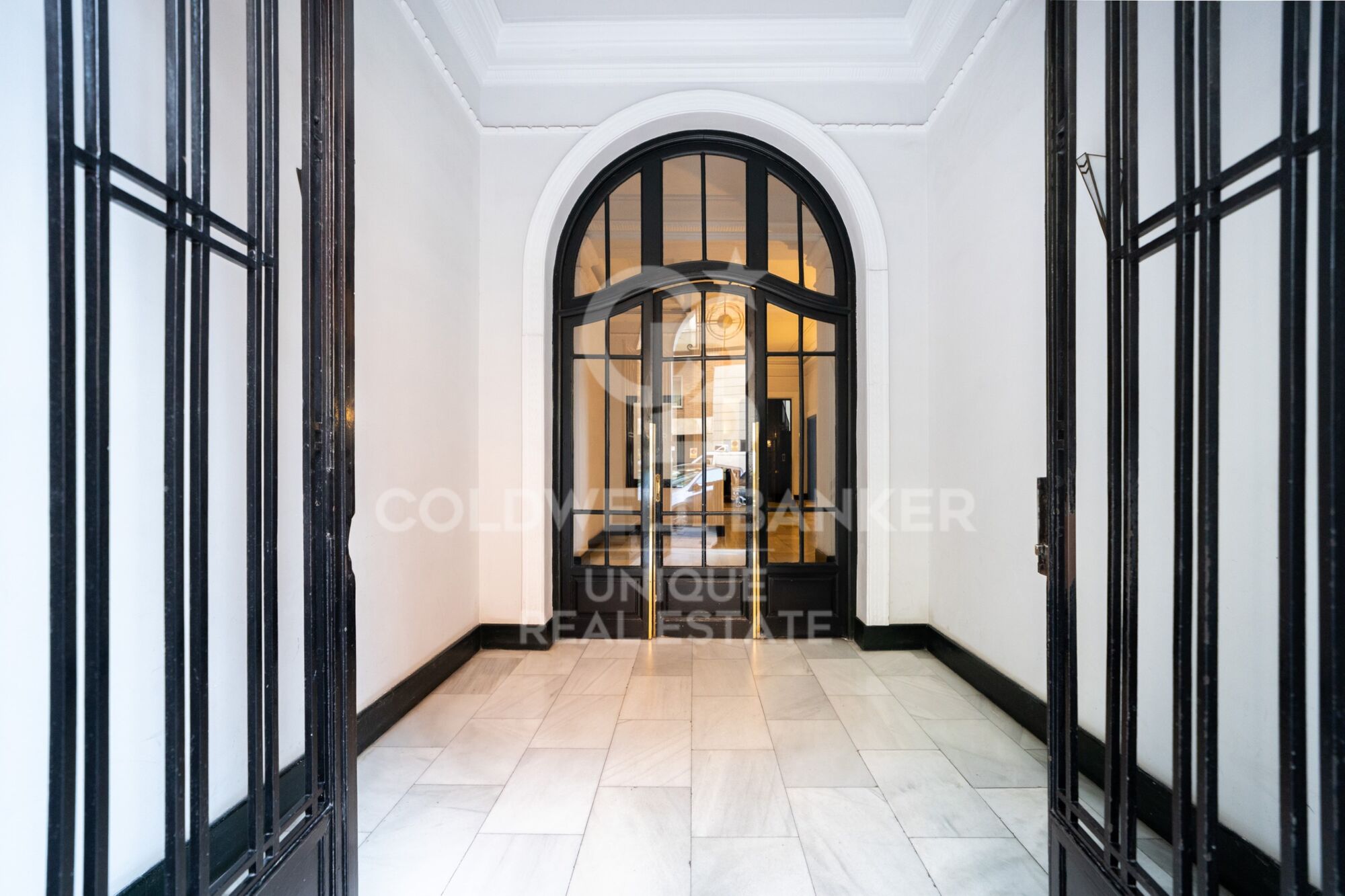 Situada en la tercera planta de un edificio señorial con portal representativo y servicio de portería, esta propiedad ha sido recientemente reformada con materiales de alta calidad y un diseño cuidado hasta el último detalle. El resultado: una fusión perfecta entre clasicismo arquitectónico y confort contemporáneo.