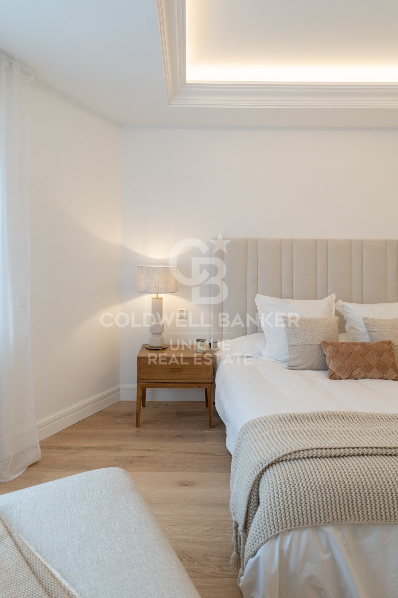 Coldwell Banker Unique presenta esta exclusiva vivienda reformada con un diseño de lujo. Esta propiedad destaca por su luminosidad y tranquilidad, ofreciendo un entorno elegante y sereno en el que cada detalle ha sido cuidadosamente pensado. Reformada íntegramente con materiales de primera calidad, esta vivienda es ideal para quienes buscan un hogar sofisticado en una de las zonas más codiciadas de la ciudad. El amplio salón de concepto abierto se integra perfectamente con una moderna cocina de diseño, creando un espacio ideal tanto para el disfrute diario como para recibir invitados. La abundante luz natural que entra a través de sus grandes ventanales baña todo el ambiente, aportando una sensación de amplitud y calidez. Además, la propiedad cuenta con una encantadora pequeña terraza, el rincón perfecto para disfrutar de momentos de relajación al aire libre. La zona de descanso ofrece cuatro dormitorios, cada uno con su propio baño en suite, proporcionando máxima comodidad y privacidad. Los acabados de lujo y la meticulosa atención al detalle en cada habitación hacen que estos espacios se conviertan en auténticos refugios personales. Este piso ofrece una distribución exclusiva, ya que es la única vivienda en su planta, lo que garantiza total privacidad y una atmósfera tranquila y exclusiva para sus propietarios. Además, cuenta con trastero, ideal para el almacenamiento adicional sin comprometer el espacio habitable. Si busca una vivienda donde el lujo, la tranquilidad y la privacidad se combinan de manera perfecta, no dude en elegir esta propiedad única. Muchas de nuestras propiedades no están publicadas por petición de nuestros clientes. Recomendamos contactarnos para más información. #ref:CBUQ467