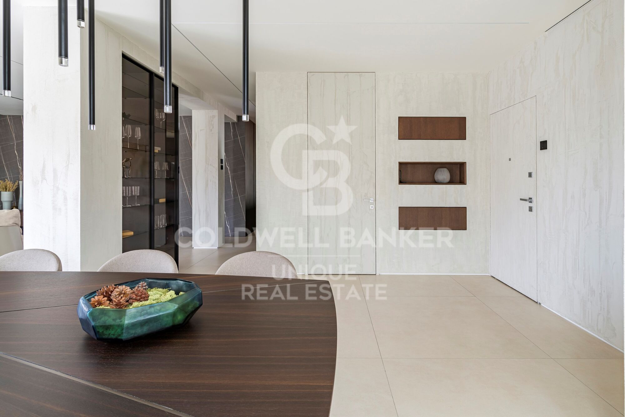 El comedor, con capacidad sobrada para más de seis personas, ofrece un ambiente ideal para recibir invitados, celebrar reuniones familiares o compartir agradables momentos de convivencia. La cocina, independiente y totalmente equipada, combina una funcionalidad impecable con un diseño de líneas refinadas y materiales de alta calidad, de la prestigiosa marca italiana Modulnova.