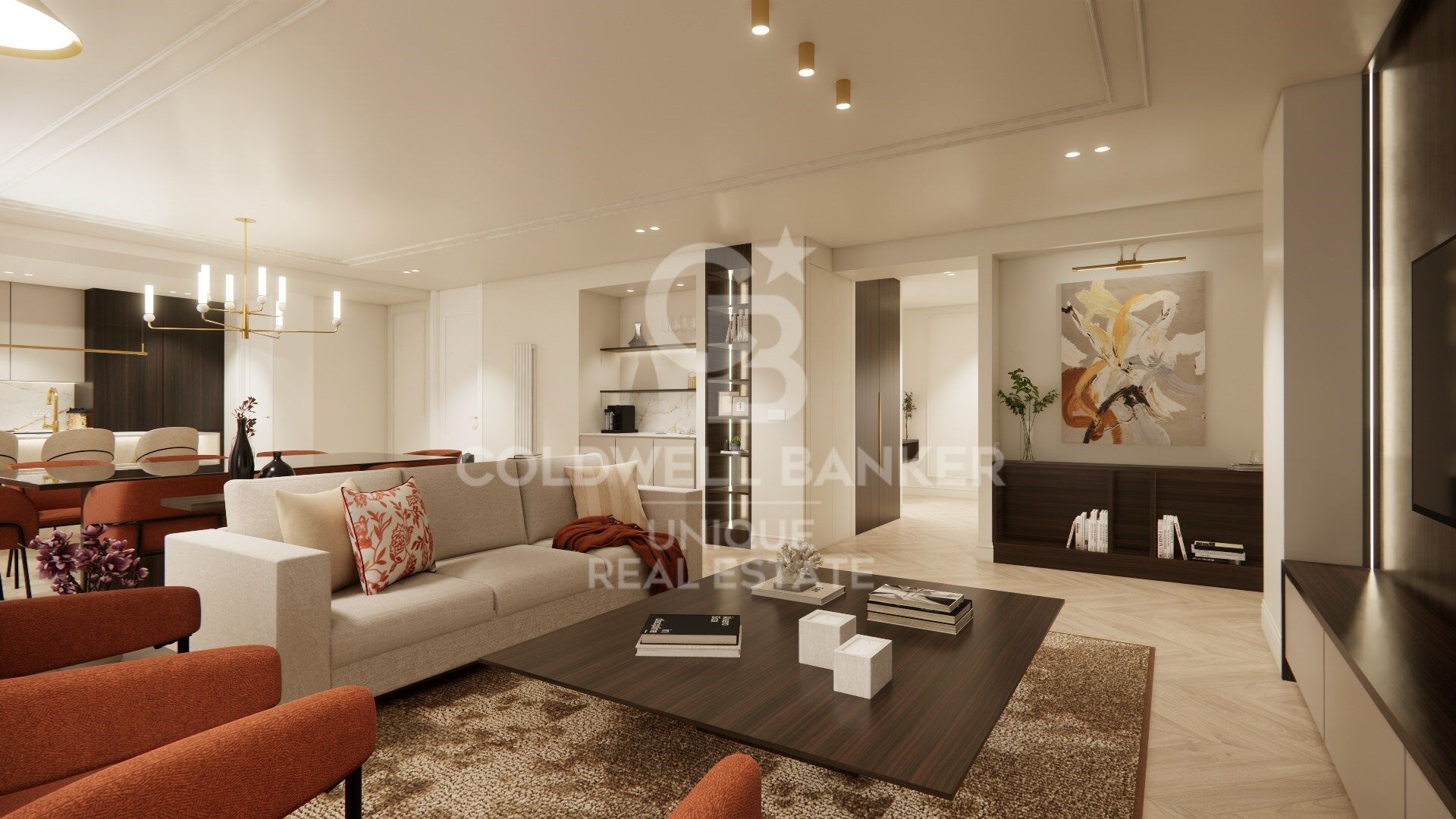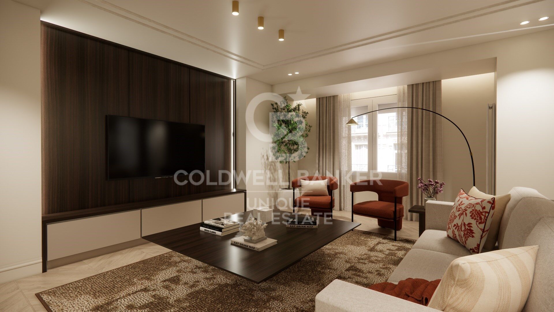 Coldwell Banker Unique presenta una increíble vivienda de lujo en el corazón del Barrio de Salamanca, en el distrito de Goya, situada en una cuarta planta exterior de la emblemática Calle de Alcalá. Con sus 206 m² construidos, 3 dormitorios y 3 baños, esta propiedad destaca por una cuidada distribución y un diseño que combina elegancia, modernidad y funcionalidad. Nos da la bienvenida un amplio hall de entrada que marca el carácter distinguido de la vivienda y conecta de forma fluida con las diferentes estancias. El espacioso salón principal sorprende por su diseño contemporáneo de estilo clásico moderno, donde la calidez y la sofisticación se equilibran a la perfección. Sus grandes ventanales, junto con una iluminación cuidadosamente diseñada, crean un ambiente acogedor ideal tanto para el descanso diario como para encuentros sociales. La cocina-comedor, presidida por una isla central, integra mobiliario de diseño y electrodomésticos de alta gama, ofreciendo una estética moderna y práctica. Su concepto abierto facilita la comunicación con el área social, convirtiéndola en el espacio perfecto para reuniones familiares o cenas con invitados. Junto a esta estancia se encuentra una sala de lavandería con un aseo, aportando comodidad adicional al día a día. La zona de descanso alberga tres dormitorios diseñados con gran atención al detalle. La suite principal cuenta con un amplio baño privado con plato de ducha y una zona de vestidor con armarios empotrados, creando un refugio íntimo y sofisticado. Dos dormitorios dobles adicionales, ambos con armarios empotrados y generosas dimensiones, comparten un baño completo que completa esta confortable área nocturna. La vivienda destaca por su reforma integral con materiales y acabados premium. Dispone de suelos de mármol, calefacción por suelo radiante en toda la propiedad y aire acondicionado por conductos con un sistema de climatización eficiente para asegurar el máximo confort todo el año. La carpintería de diseño, la iluminación de vanguardia y las ventanas dobles con excelente aislamiento térmico y acústico reflejan el alto nivel de calidad presente en cada detalle. Además, se ofrece la opción de adquirir el mobiliario por 35.000 €, cuidadosamente seleccionado para complementar el proyecto de interiorismo. #ref:CBUQ1173