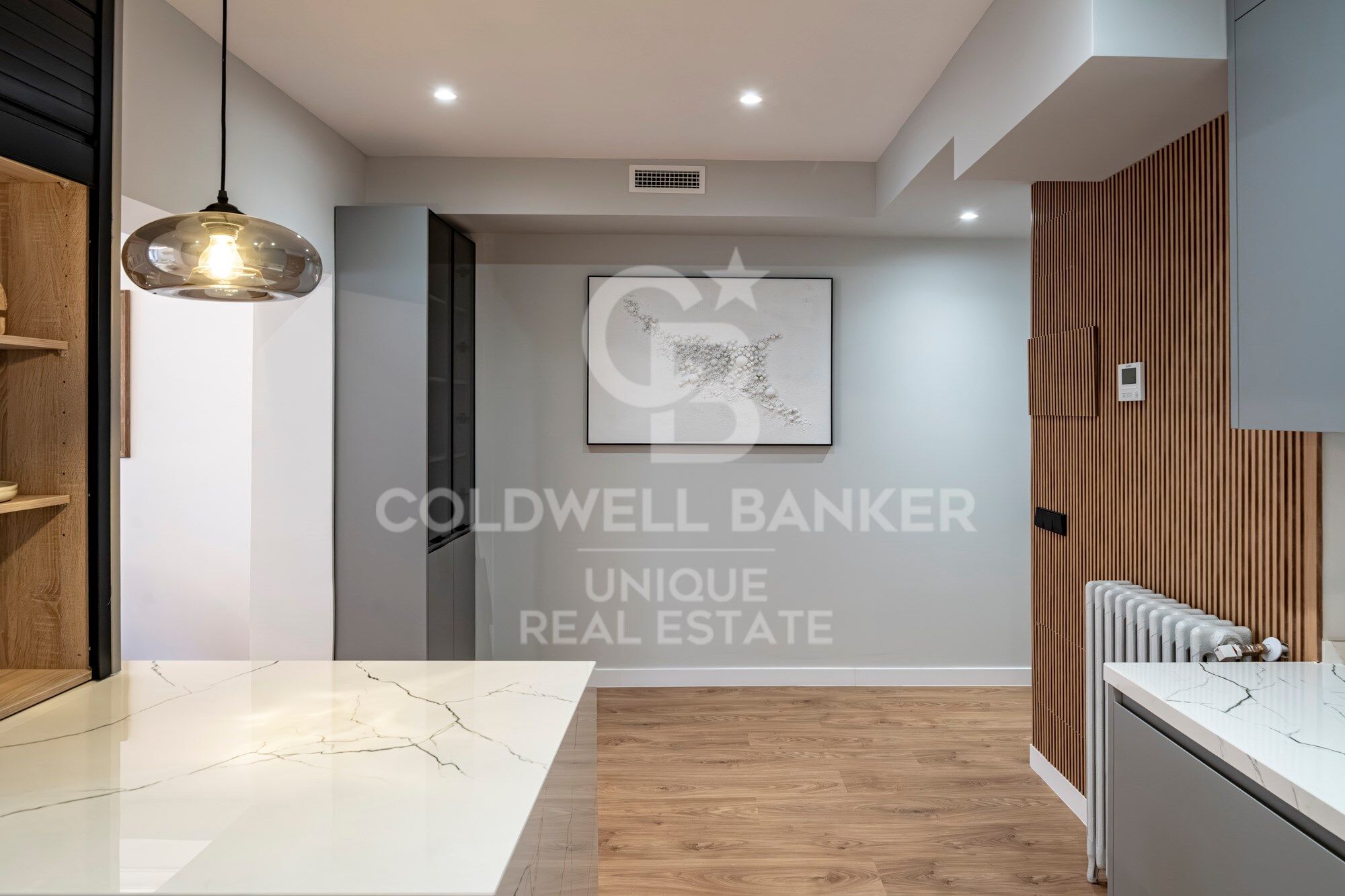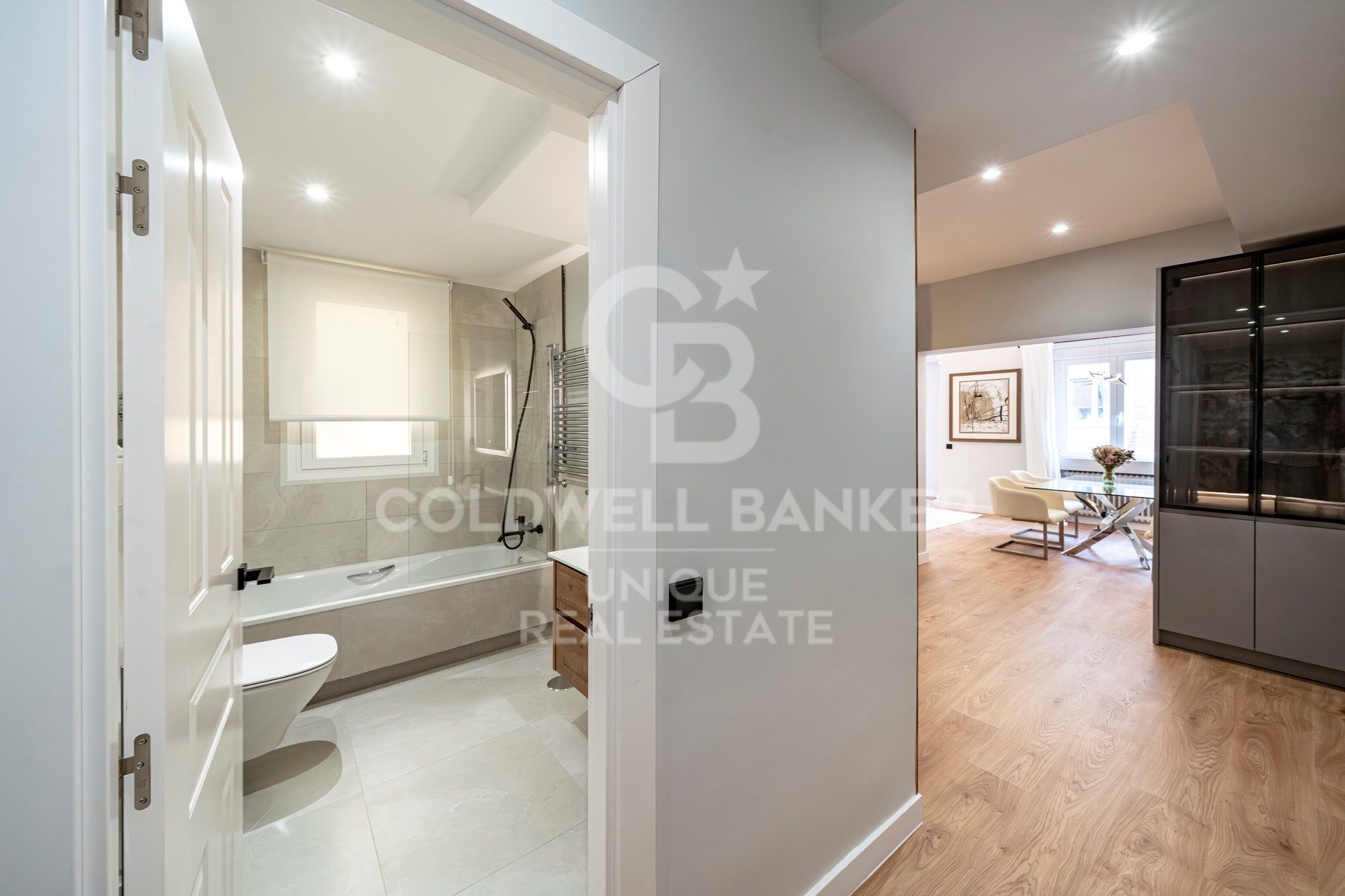 Entre su equipamiento destaca el aire acondicionado centralizado con sistema de zonificación domótica Airzone, que permite regular la temperatura en cada estancia; armarios empotrados a medida, pintura lisa, y pavimentos porcelánicos de gran formato (60x60 y 33x90) en tonos neutros en los baños.