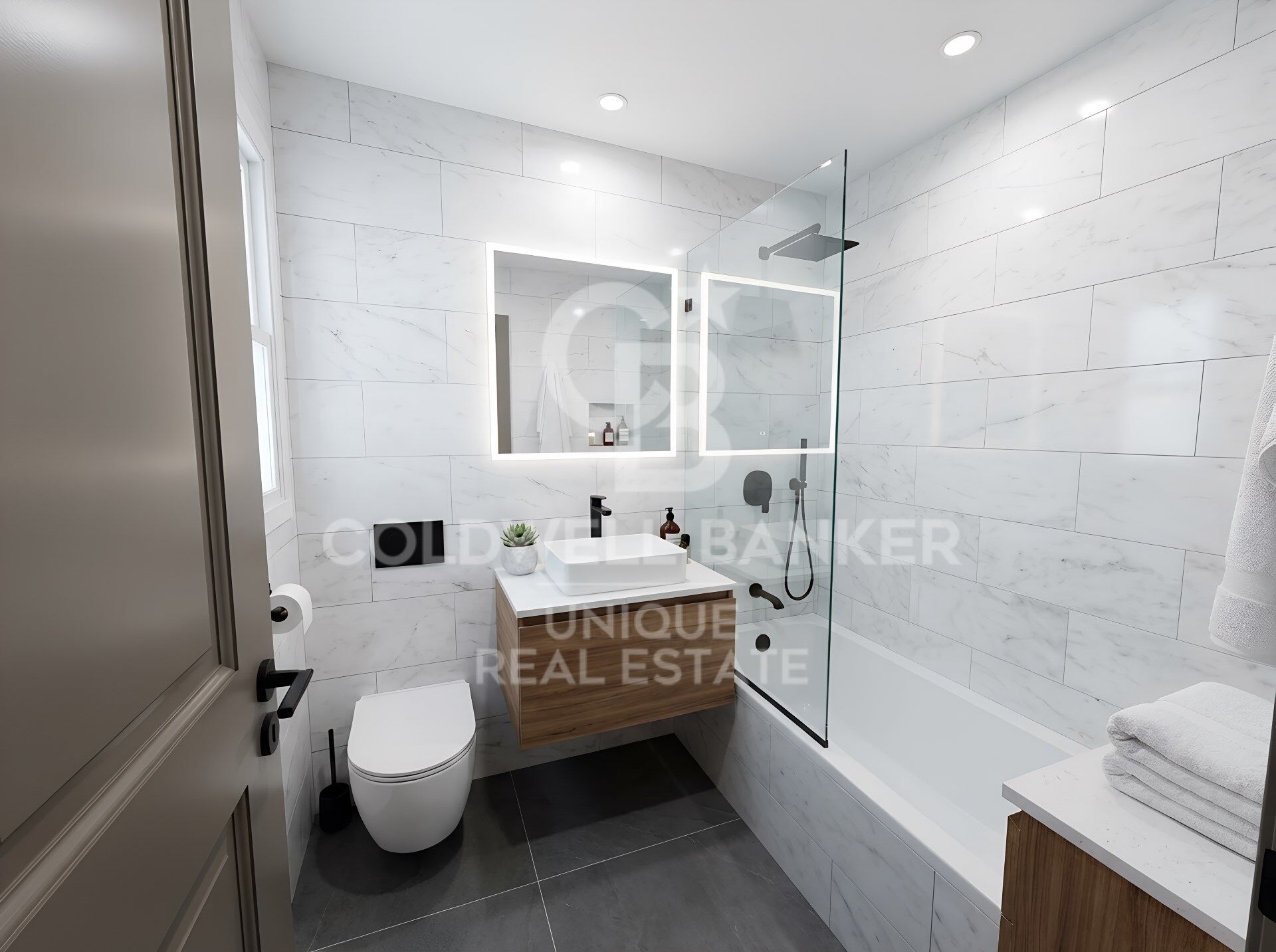 Cuenta con dos terrazas que aportan luz natural y agradables espacios exteriores, un valor añadido que mejora notablemente la calidad de vida. La propiedad se encuentra completamente a reformar, representando una excelente oportunidad de inversión; las imágenes mostradas corresponden a renders de una posible propuesta de reforma.