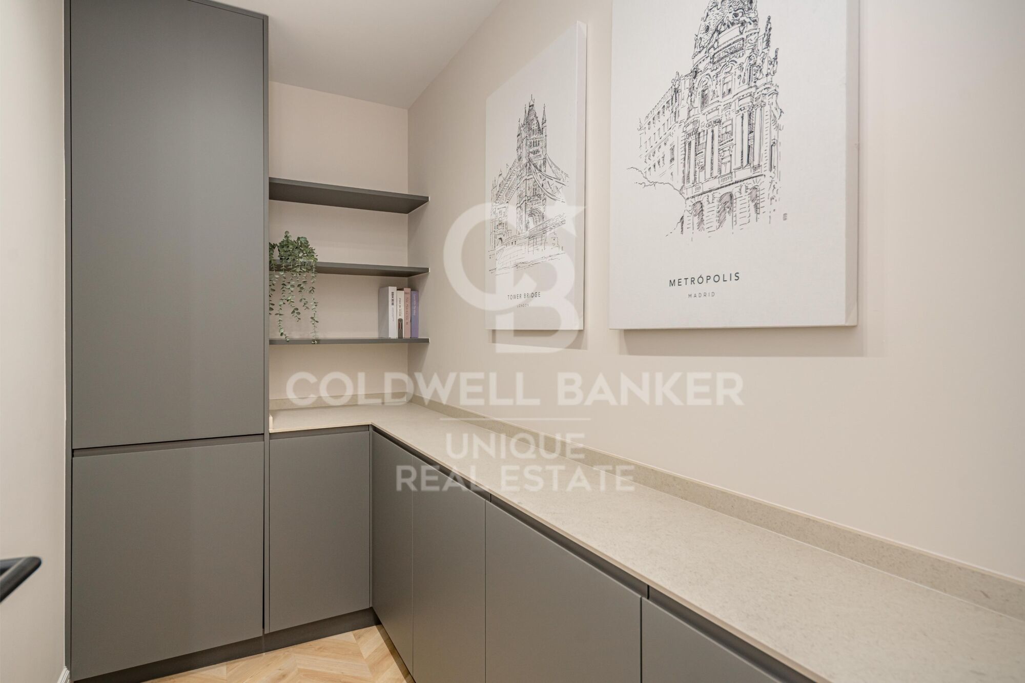 La cocina, totalmente equipada con electrodomésticos de alta gama, ha sido concebida como un espacio práctico y sofisticado, ideal tanto para el uso diario como para quienes disfrutan de la gastronomía y de recibir invitados.