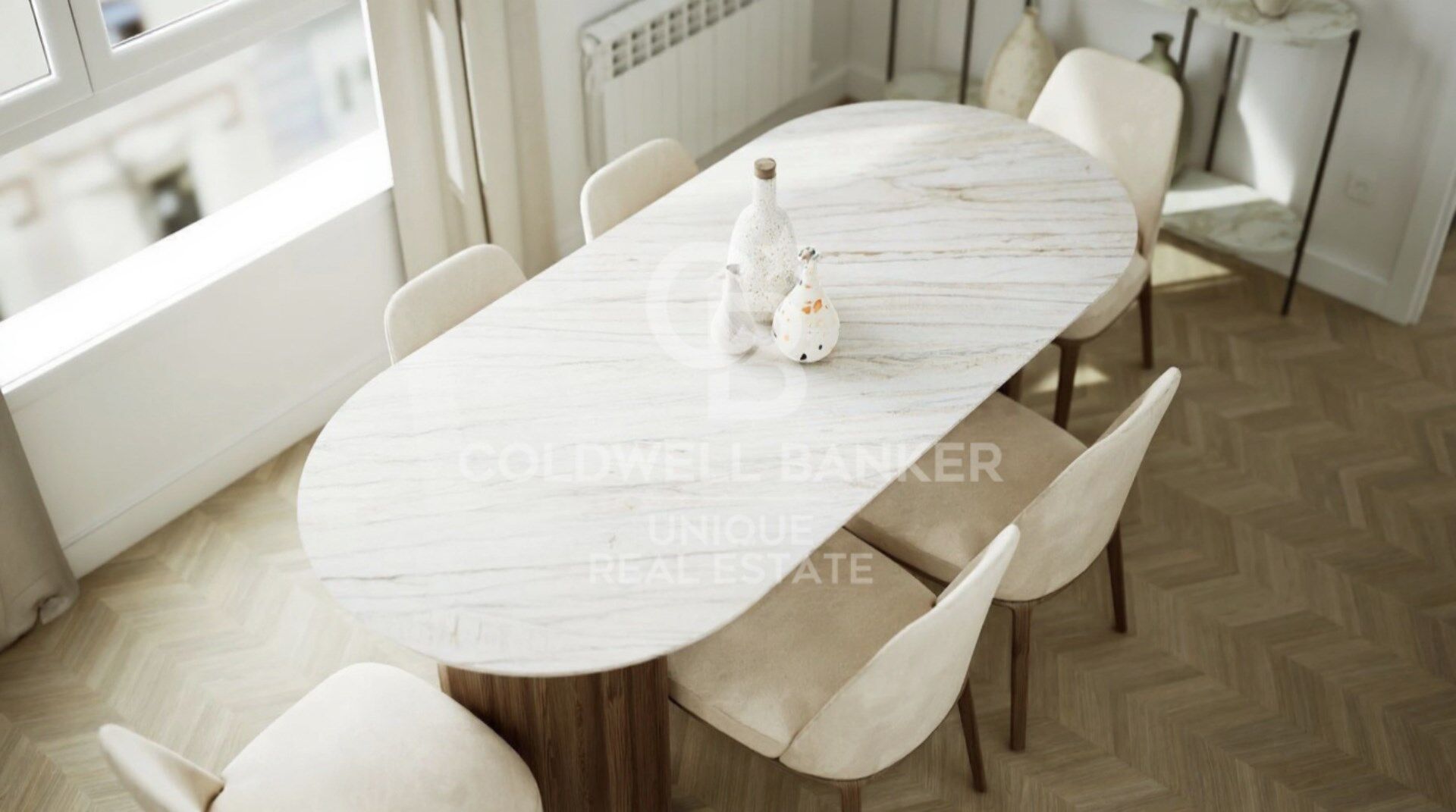 La vivienda, actualmente en fase de reforma con calidades altas, contará con tres dormitorios y dos baños, distribuidos de manera funcional y elegante para maximizar el espacio y la entrada de luz natural en cada estancia.
