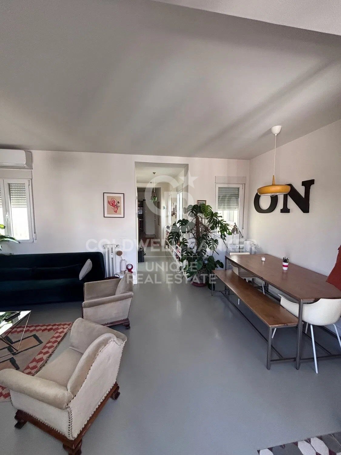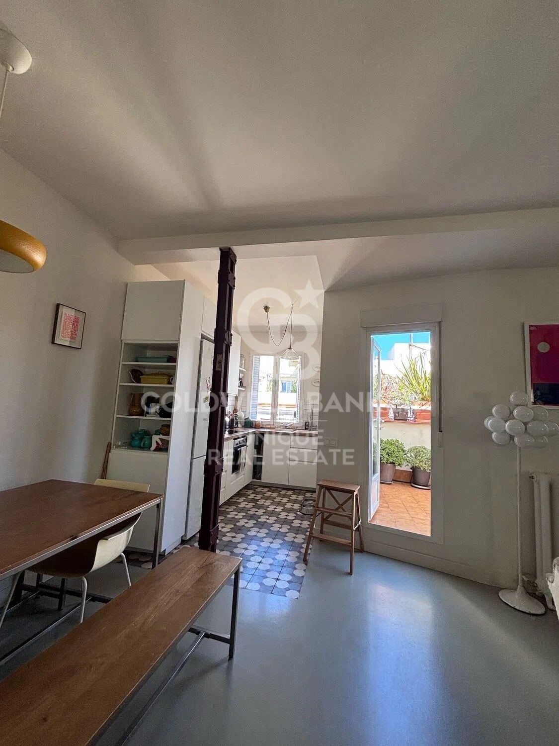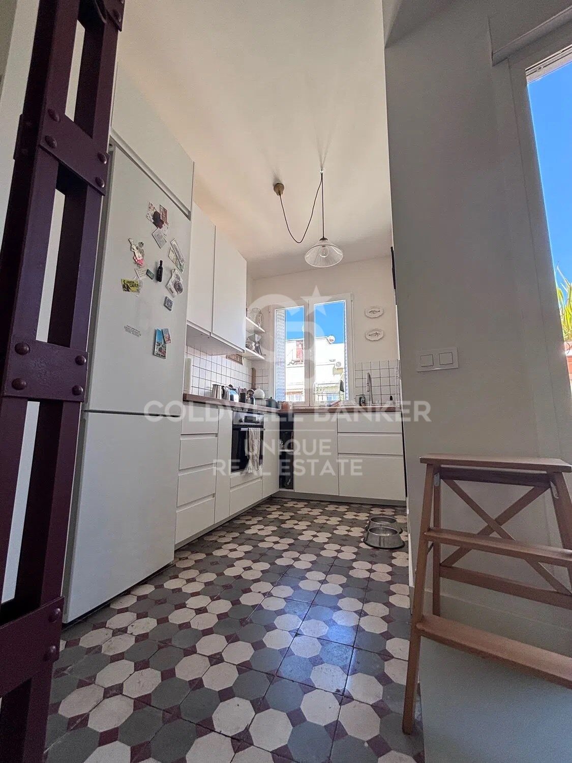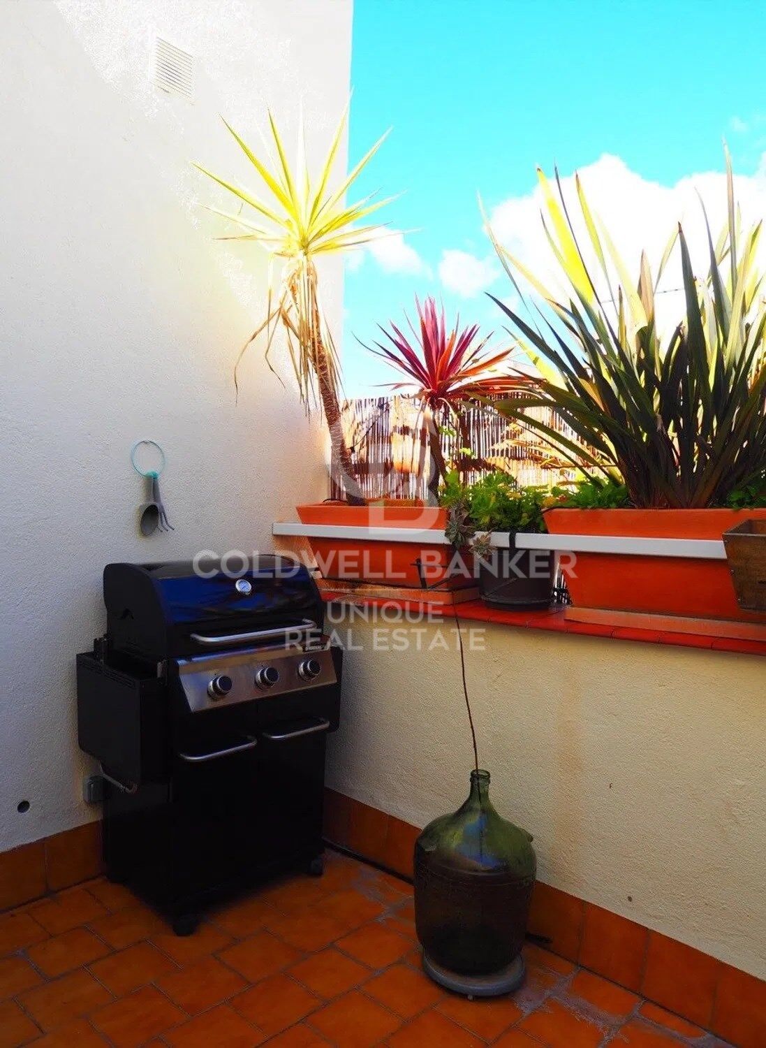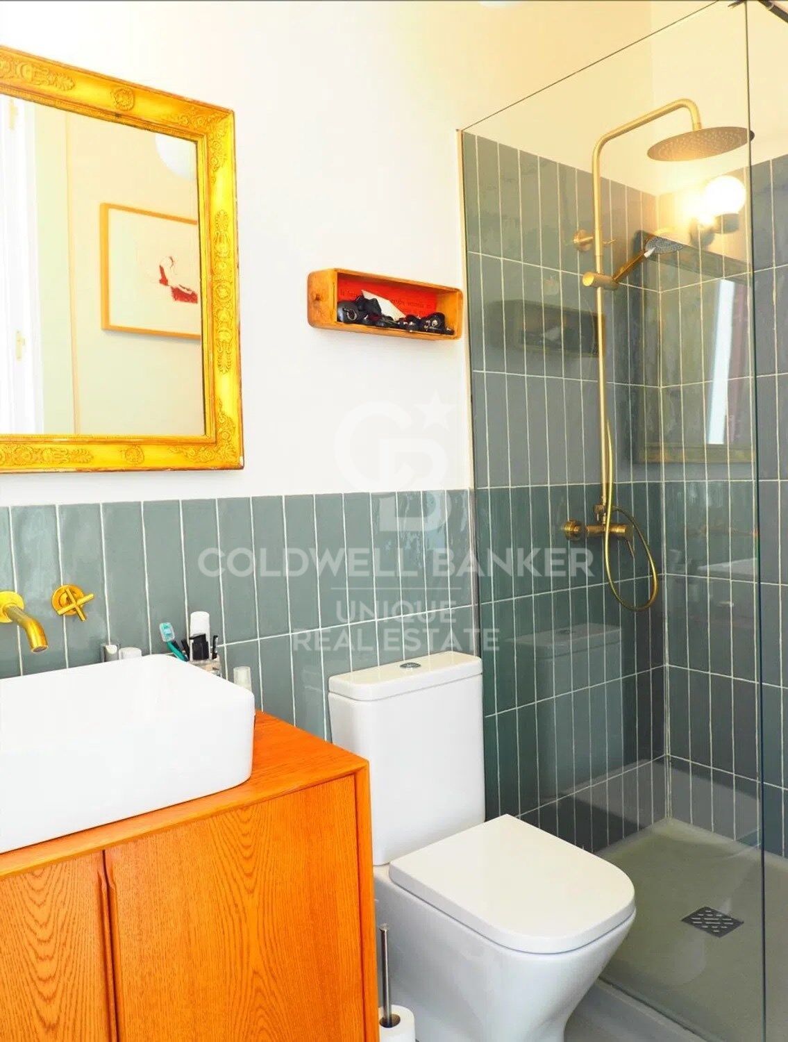 El ático disfruta de una terraza privada, un valor añadido poco habitual en la zona, ideal como espacio exterior para desconectar o disfrutar al aire libre. En cuanto a calidades, la vivienda cuenta con ventanas de Climalit, que garantizan un buen aislamiento térmico y acústico, y un suelo continuo de resina epoxi, que aporta una estética moderna, elegante y de fácil mantenimiento.