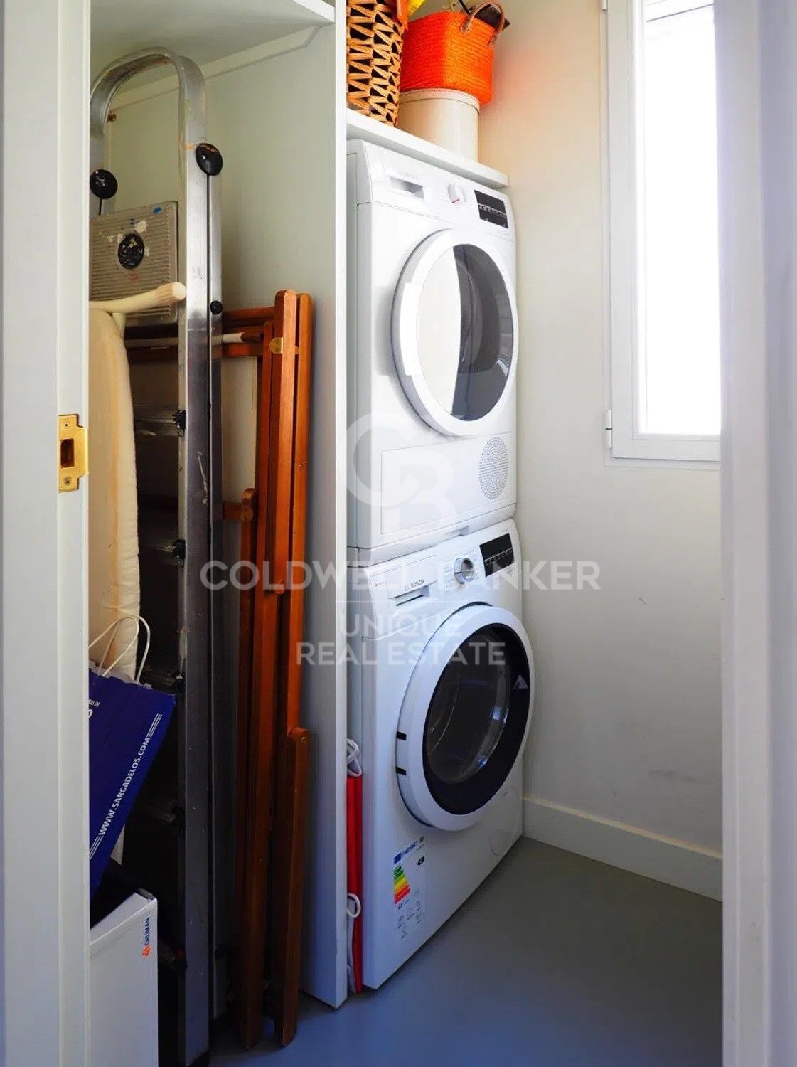La propiedad fue reformada íntegramente hace tres años, ofreciendo un estilo contemporáneo, funcional y materiales de calidad. La distribución es cómoda y equilibrada, con dos dormitorios y dos baños completos. El dormitorio principal cuenta con vestidor, mientras que la vivienda dispone además de armarios empotrados que optimizan el espacio de almacenaje. Se ha habilitado un cuarto independiente para lavadora y secadora, aportando orden y practicidad al día a día.