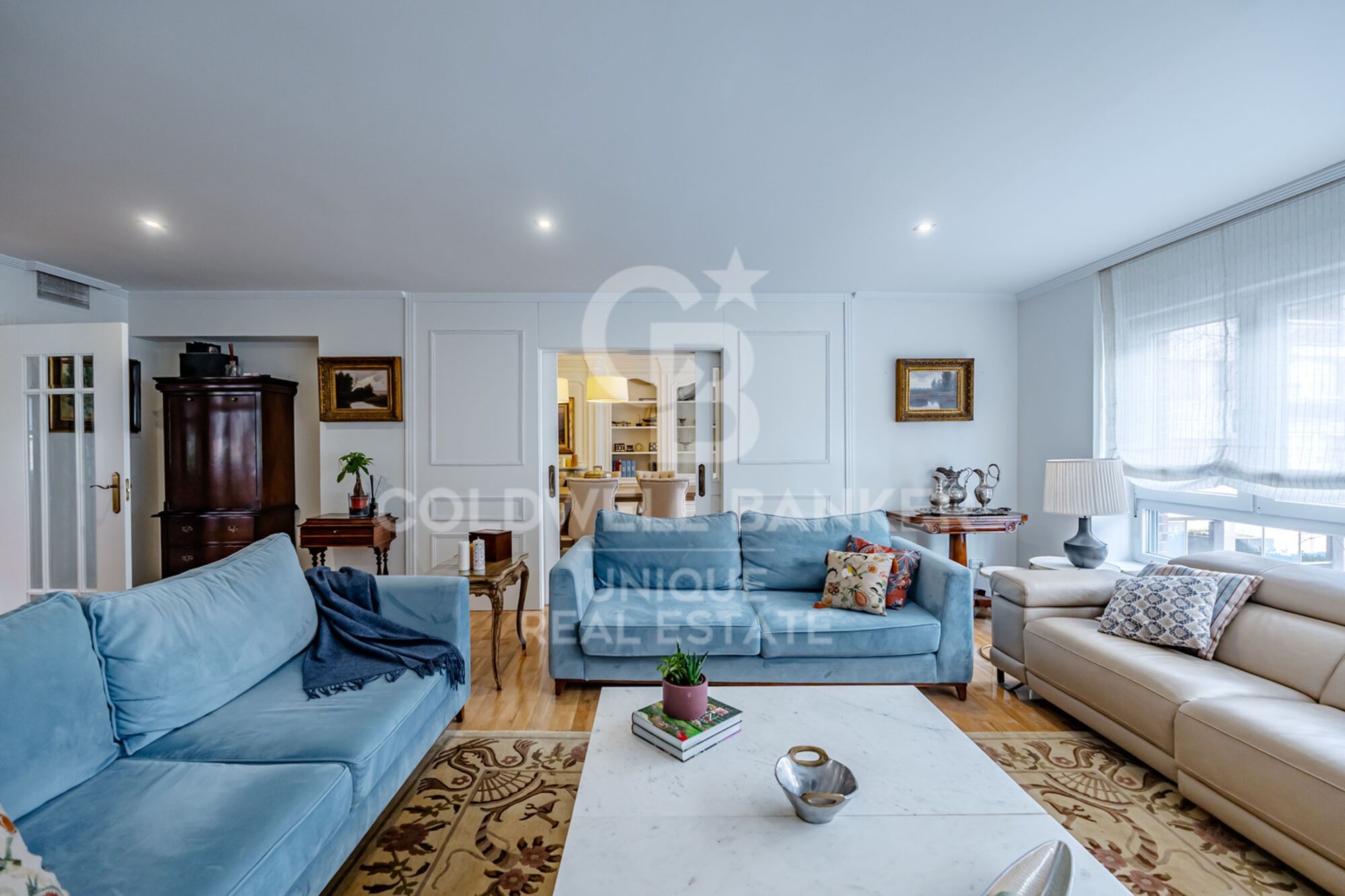 Al acceder a la vivienda nos recibe un amplio y luminoso hall de entrada con ventanal, que da paso a una magnífica zona de día compuesta por salón y comedor independientes, comunicados mediante una elegante puerta corredera. Ambos espacios disfrutan de grandes ventanales a la calle, aportando abundante luz natural y una agradable sensación de amplitud.