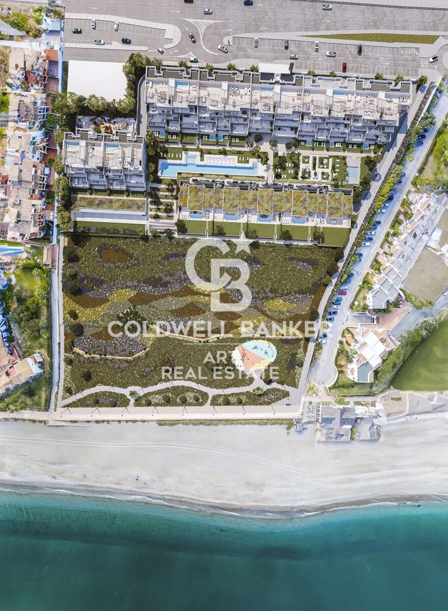 El proyecto combina arquitectura de diseño moderno con paisajismo perfectamente estudiado que rodea el edificio con sus amplios jardines y zonas comunes de ocio que permiten al cliente disfrutar de un concepto único en la primera línea de la playa.