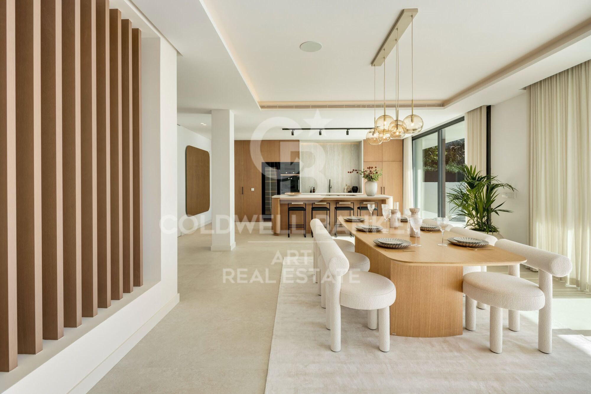 El interior destaca por su estilo sofisticado, con suelos de roble, porcelanato de gran formato y electrodomésticos de alta gama de GAGGENAU y SIEMENS. Entre sus comodidades se incluyen gimnasio privado, piscina climatizada, sala de cine y amplias zonas exteriores para el ocio y la vida al aire libre.