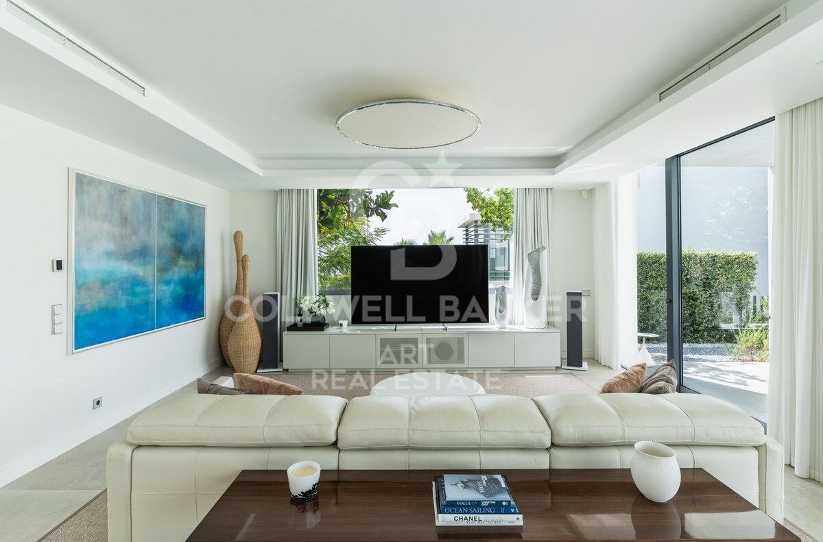 La villa se vende completamente amueblada con piezas de diseño de Natuzzi, Cattelan Italia y Dedon, y equipada con suelo radiante, aire acondicionado por zonas, sistema domótico, alarma y riego automático.