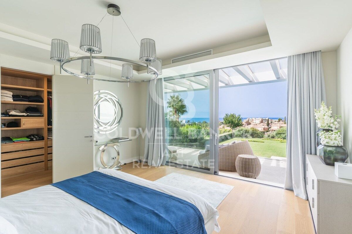 La propiedad dispone de amplias zonas de estar y comedor con ventanales de suelo a techo, una cocina abierta de última generación equipada con electrodomésticos de alta gama, y una espectacular suite principal con vestidor y terraza privada con vistas al mar.
