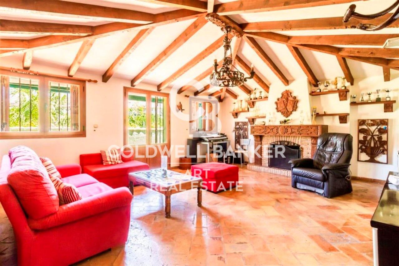 Encantadora villa ubicada en una zona muy céntrica, sobre una amplia parcela que ofrece privacidad, comodidad y todos los espacios necesarios para disfrutar en familia o con amigos. La vivienda se distribuye en dos plantas con orientación principal al sur y bonitas vistas a las montañas.