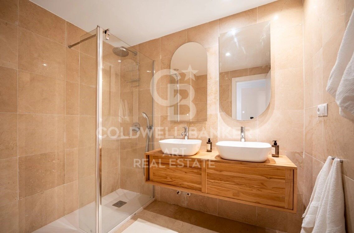 La luminosa zona de estar de planta abierta conecta a la perfección la moderna cocina, el comedor y el salón. Una acogedora chimenea aporta calidez y personalidad, mientras que las grandes puertas correderas se abren a la terraza, ideal para comer al aire libre o simplemente relajarse disfrutando de las vistas. Todas las habitaciones son amplias y luminosas, con armarios empotrados para un amplio espacio de almacenamiento. Los baños presentan un diseño contemporáneo, con duchas de efecto lluvia y elegantes lavabos de madera.