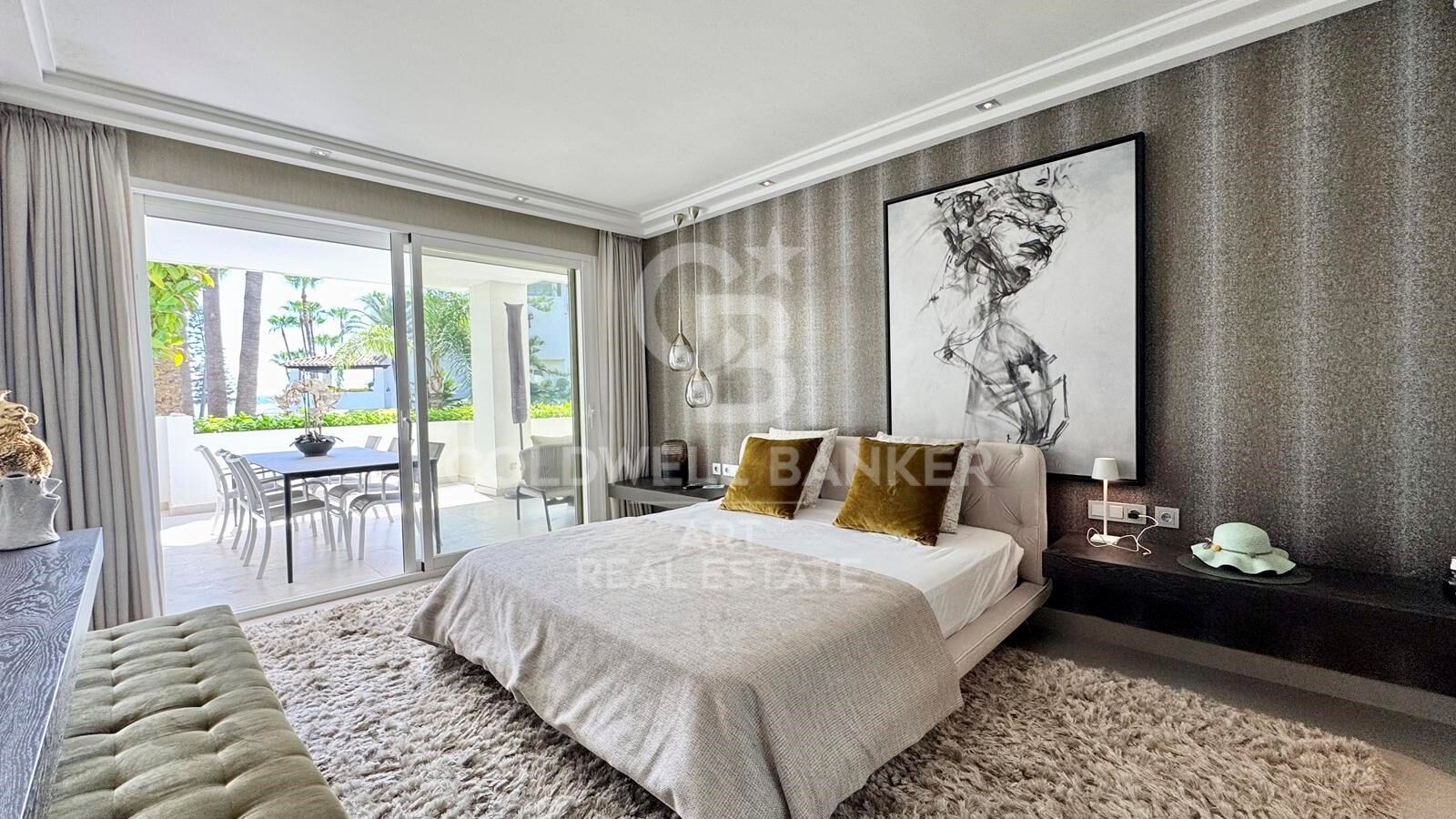 La vivienda cuenta con tres dormitorios, todos con baño en suite, una amplia zona de estar de planta abierta con cocina moderna y acabados de alta gama. Grandes ventanales correderos conectan el interior con una soleada terraza de 40m² con vistas a los cuidados jardines botánicos y al mar Mediterráneo. Al estar en planta baja, ofrece acceso directo a la piscina comunitaria, y la playa se encuentra a solo unos pasos.