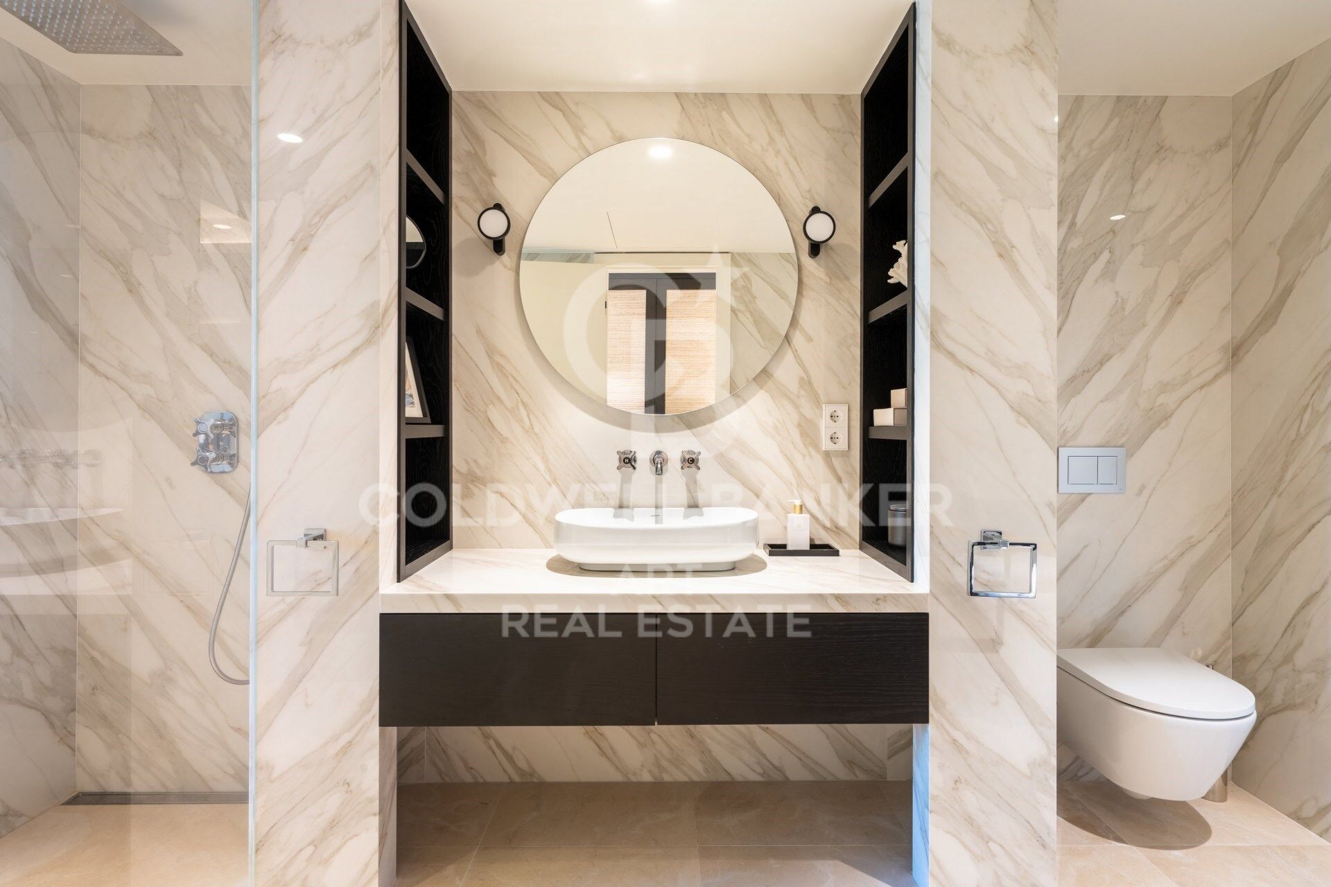 La villa dispone de cuatro amplios dormitorios dobles, todos con armarios empotrados y grandes ventanales que aportan abundante luz natural. Los tres baños modernos están completamente equipados y acabados con materiales de primera calidad, contribuyendo a la sensación de lujo discreto que se percibe en toda la vivienda.