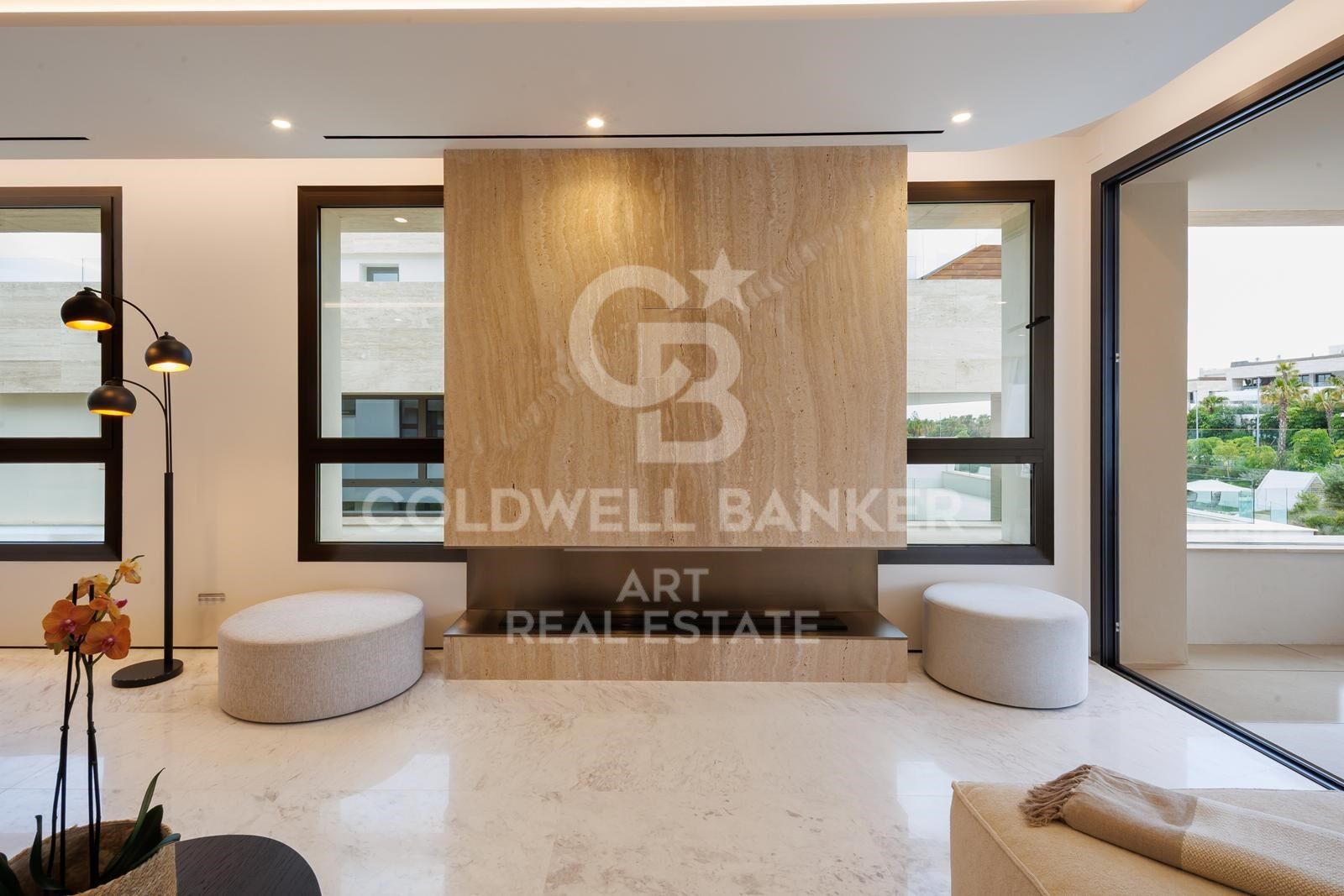 Al entrar, un amplio espacio de estar de planta abierta da la bienvenida con majestuosidad. La luz mediterránea inunda el interior a través de grandes ventanales, impregnando cada rincón de calidez. El diseño invita a la personalización: sus proporciones generosas y su apertura ofrecen un lienzo perfecto para tu visión personal.