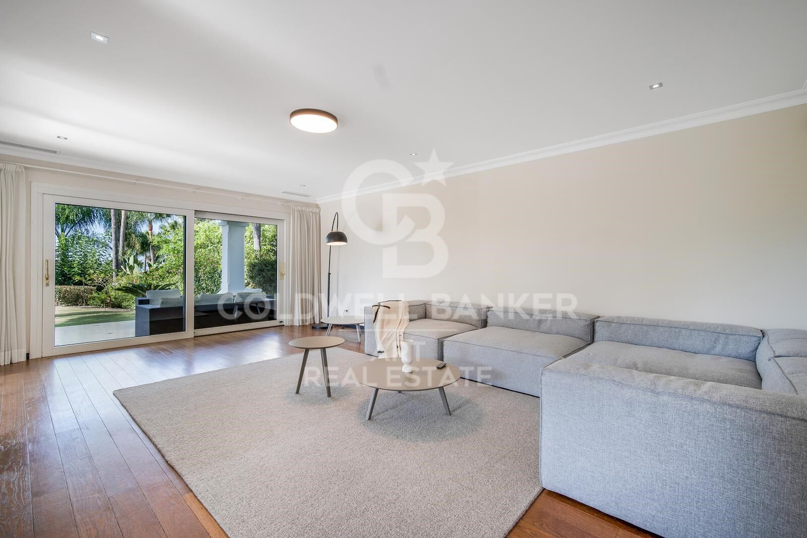 La villa se encuentra en una zona privilegiada, a poca distancia de todos los servicios esenciales: supermercados, tiendas, restaurantes, colegios internacionales y campos de golf, además de estar a solo cinco minutos en coche del mar y del centro de Marbella.