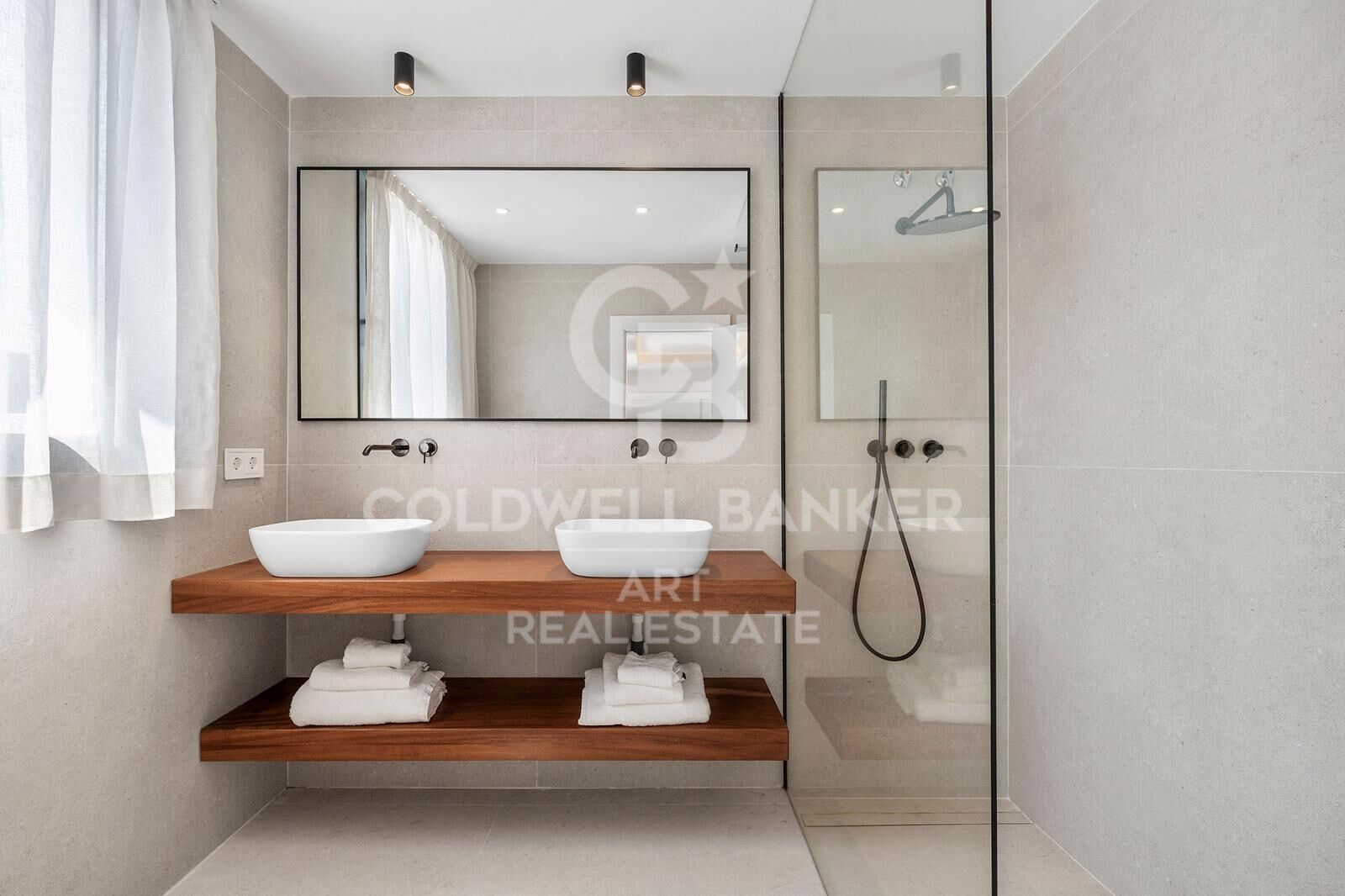 La distribución equilibra funcionalidad y lujo: un dormitorio en suite en la planta baja se abre a un tranquilo patio inglés, mientras que la planta principal integra el salón, comedor, cocina Siemens totalmente equipada y una terraza soleada. La planta superior alberga la suite principal con terraza privada y dos dormitorios adicionales con baño compartido.