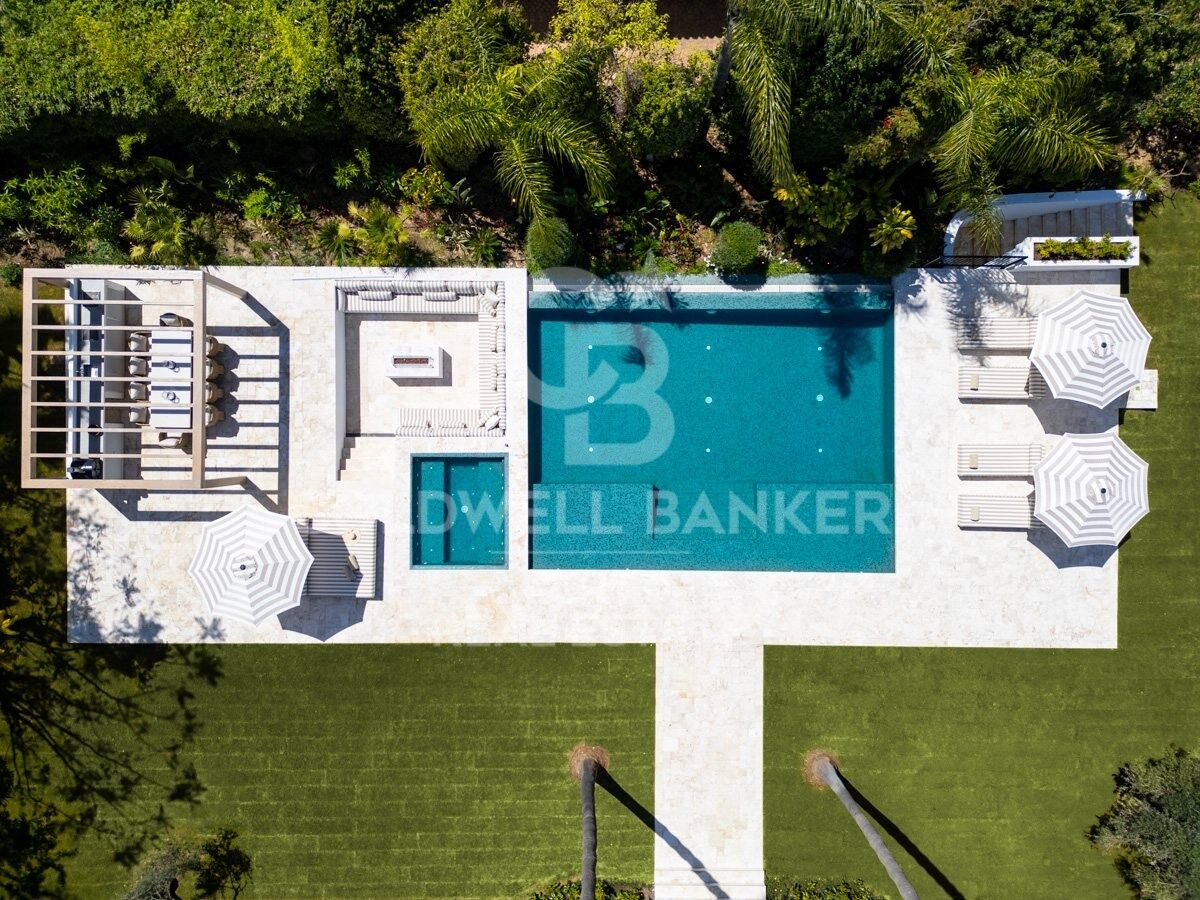 El interior está pensado para deslumbrar, con espacios abiertos de gran amplitud, techos altos y una paleta de colores neutros que refuerzan la luminosidad natural. La propiedad incluye varios salones elegantes, una cocina a medida totalmente equipada, un cine privado de última generación, una exclusiva bodega, además de un completo gimnasio con zona de spa. Los cinco dormitorios son auténticos santuarios privados, cada uno con su baño en suite y acceso directo a terrazas o jardines, creando un equilibrio perfecto entre privacidad y conexión con la naturaleza.