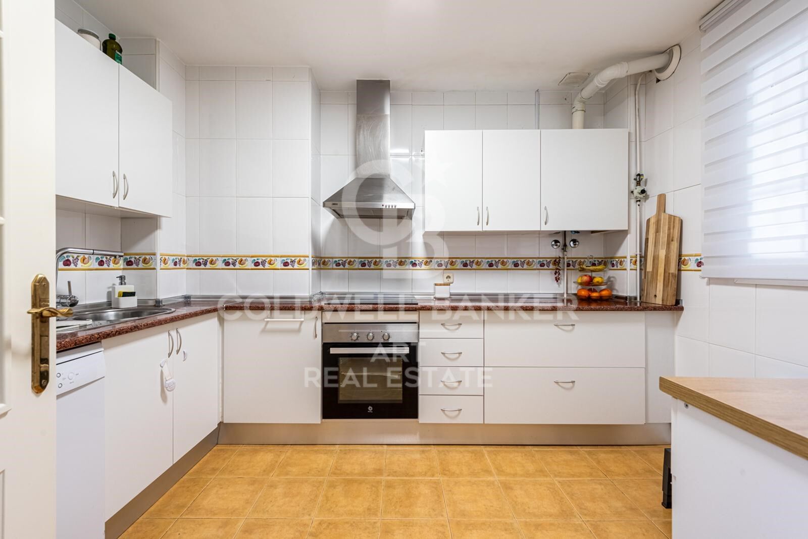 Con 195m² interiores y casi 60m² de terrazas, la vivienda se distribuye en dos plantas. Un elegante vestíbulo da acceso a un aseo de invitados y a una cocina independiente luminosa y completamente equipada. El amplio salón-comedor, con chimenea y grandes ventanales, se abre a una terraza cubierta orientada al suroeste con barbacoa integrada, perfecta para disfrutar al aire libre.