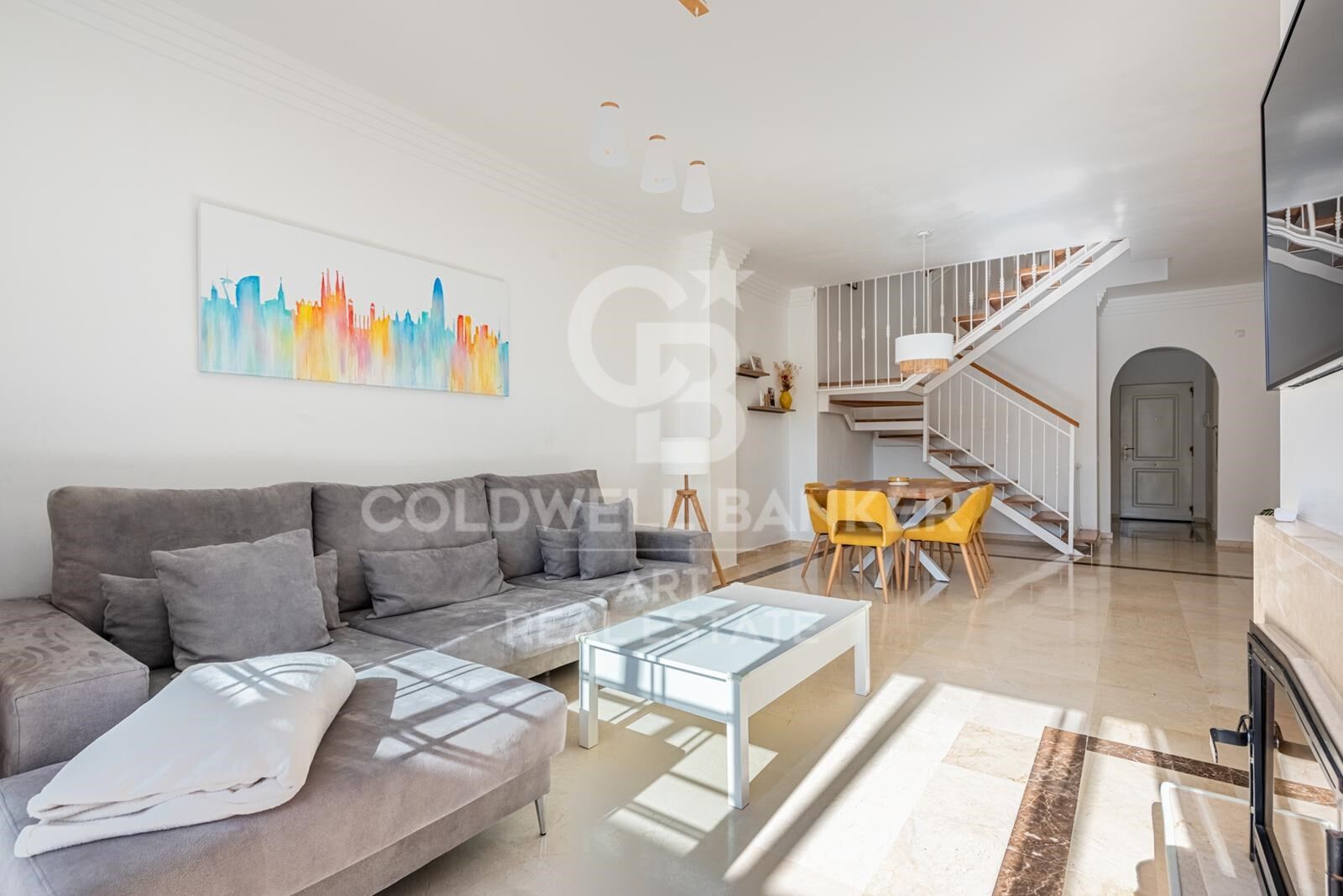 Luminoso y amplio ático dúplex con vistas parciales al mar en River Garden, Nueva Andalucía, Marbella