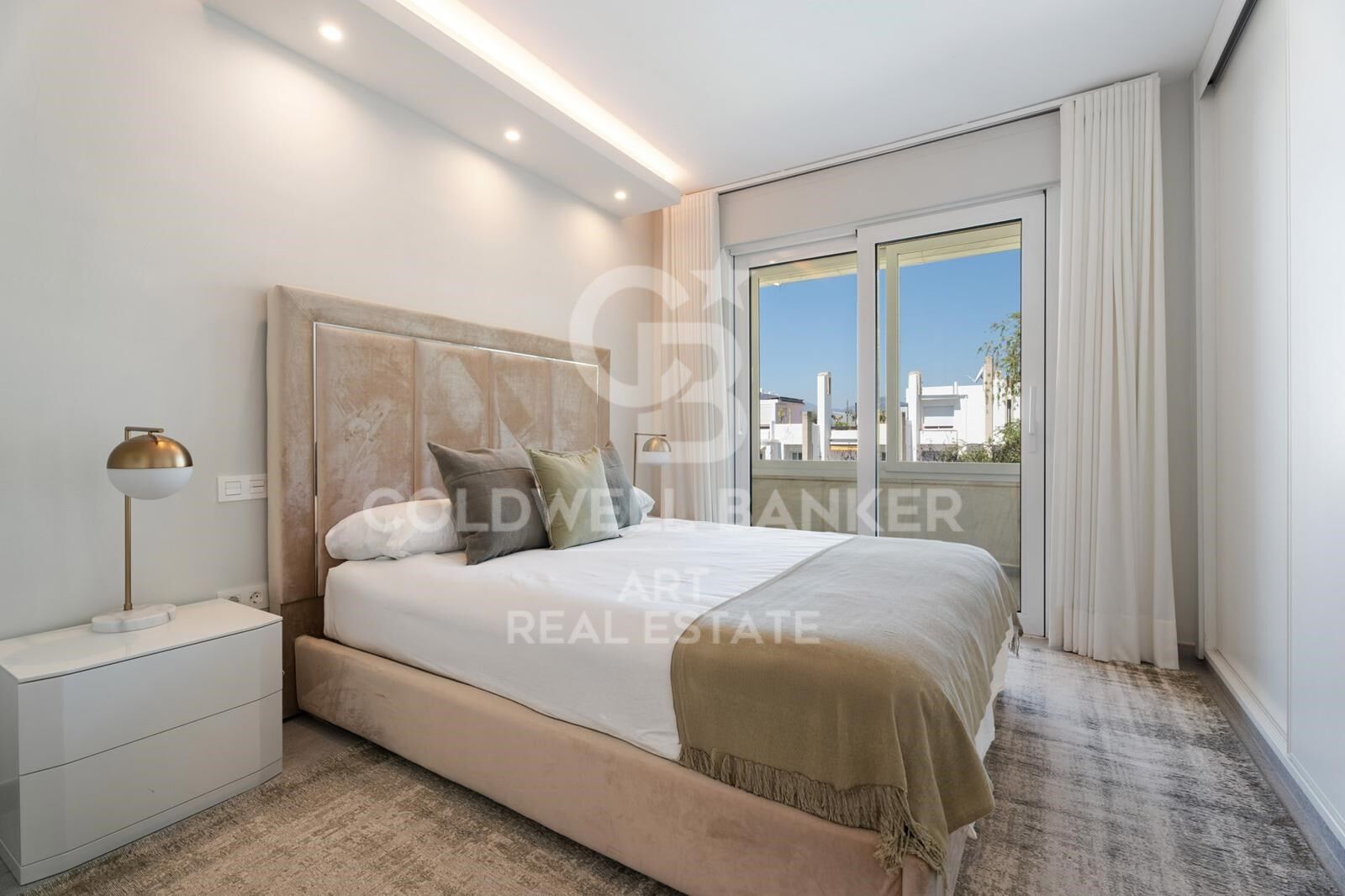 El dormitorio principal es un refugio de lujo con armarios empotrados y un elegante baño en suite. El segundo dormitorio está perfectamente ubicado cerca del segundo baño, lo que lo hace ideal para invitados o para la vida familiar.