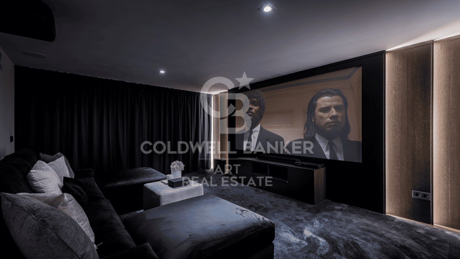 La planta inferior alberga dos dormitorios adicionales, una amplia zona de lavandería, una sofisticada bodega, gimnasio totalmente equipado y una sala de cine privada, creando un espacio de ocio inigualable dentro del hogar.