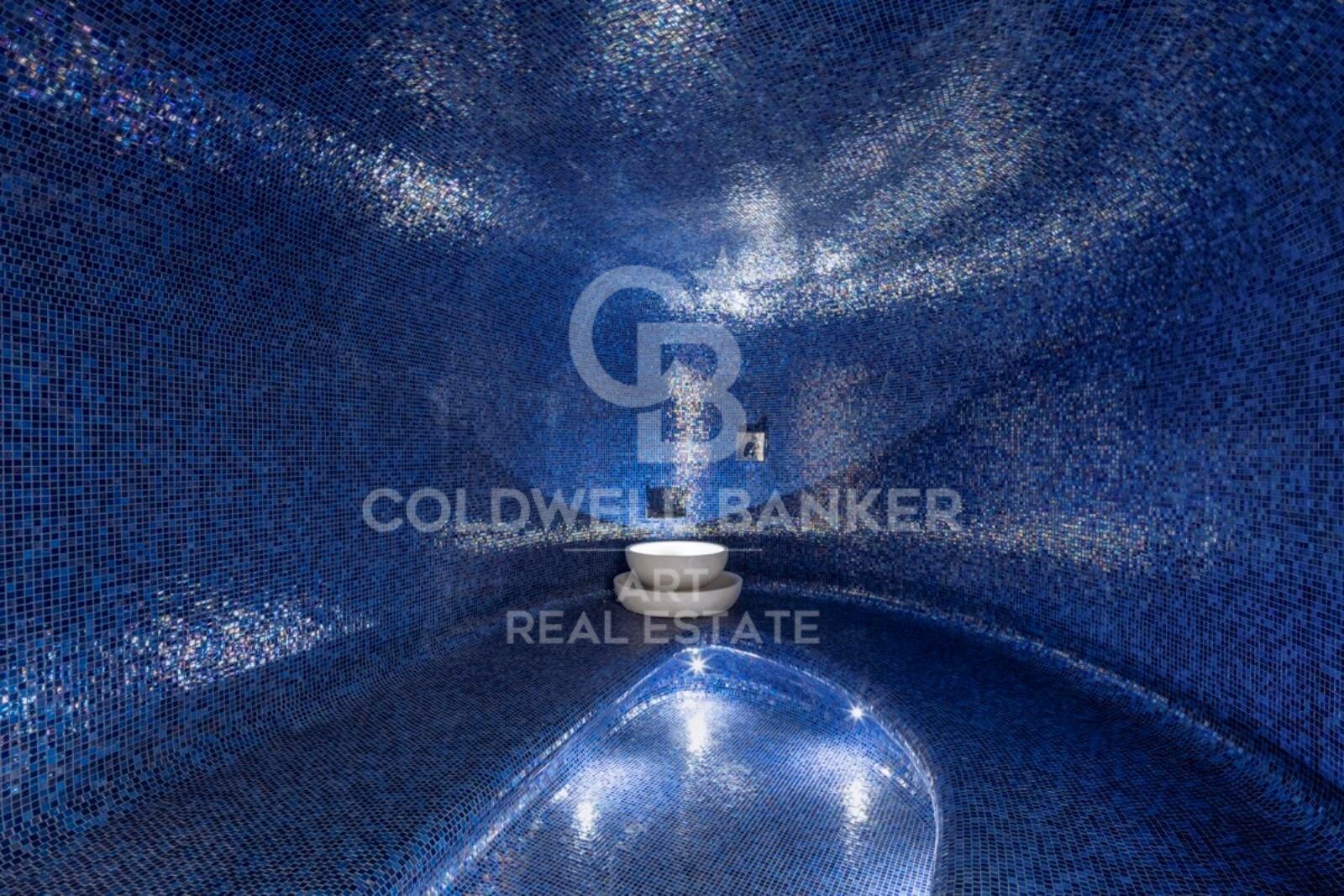 El bienestar es un elemento central de esta propiedad, con un spa privado revestido de azulejos azul profundo, que incluye Hammam y baño turcoun espacio perfecto para relajarse y renovarse. Un elegante ascensor conecta todas las plantas, asegurando una circulación cómoda por toda la casa.