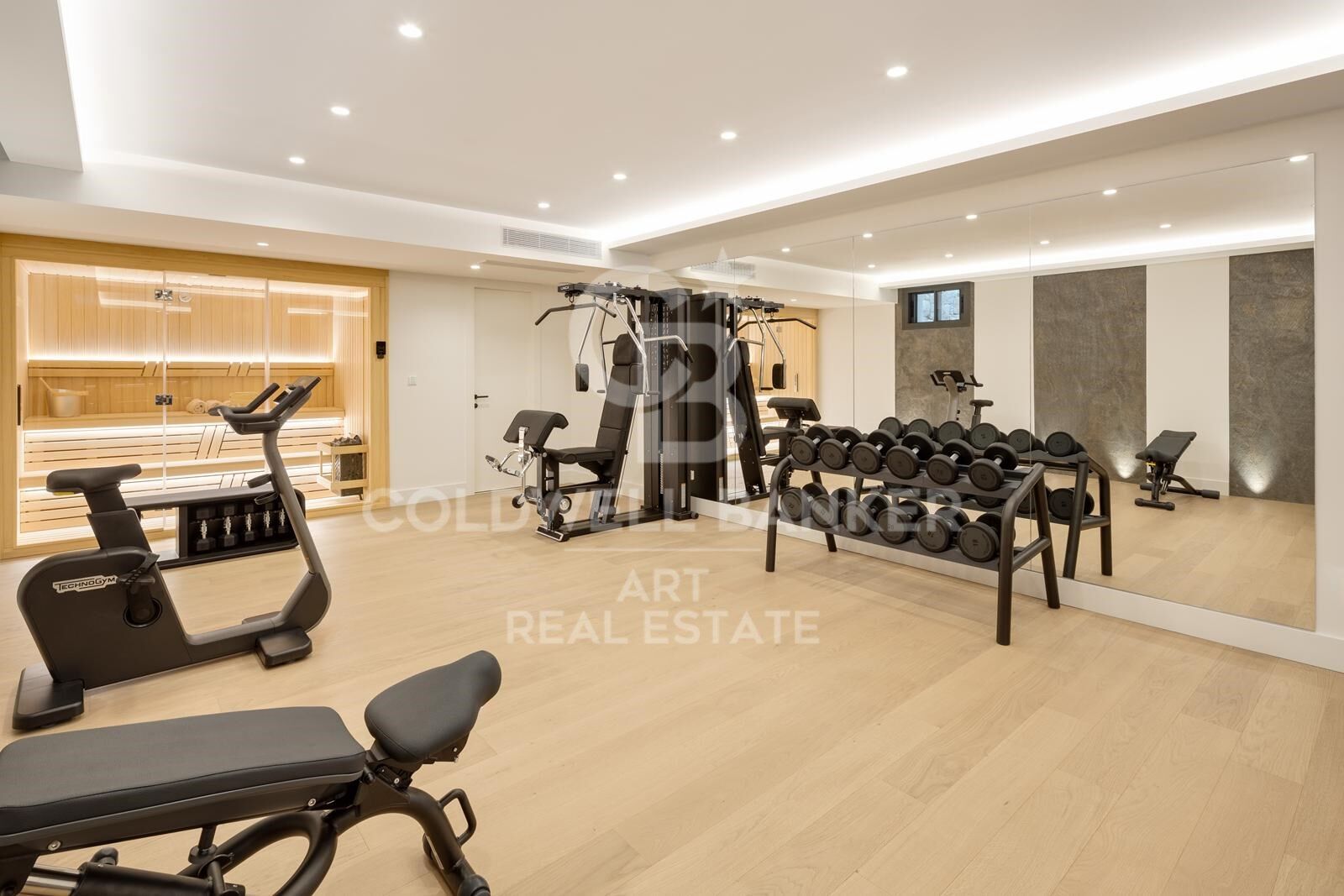 En el nivel inferior se encuentran dos dormitorios adicionales con baño en suite, junto a una zona de ocio con bar, cine, billar, bodega, gimnasio, sauna y otra suite para invitados.