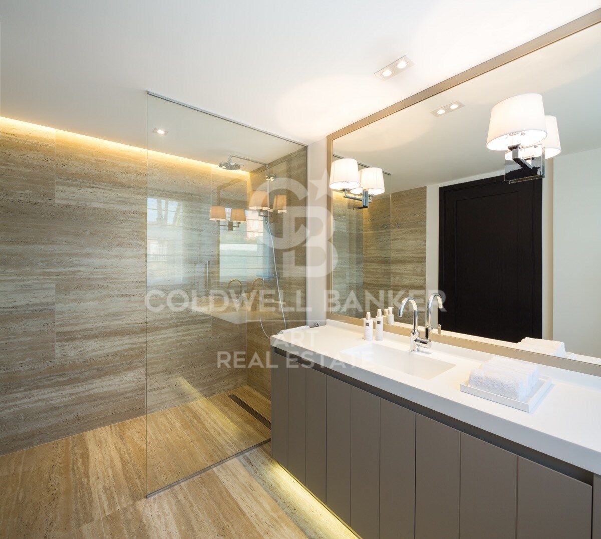 El espacio exterior no se queda atrás, redefiniendo el concepto de vida interior-exterior con sus generosas dimensiones y una cuidada distribución para disfrutar del clima mediterráneo. El comedor exterior es perfecto para celebraciones, mientras que la zona de chill-out con hoguera empotrada invita al descanso. Un área dedicada a tomar el sol permite relajarse contemplando las impresionantes vistas, y la terraza en la azoteael verdadero punto culminante de la villaofrece panorámicas espectaculares y un ambiente inmejorable.