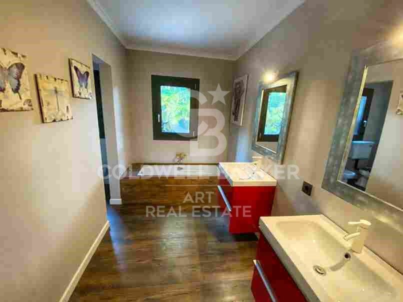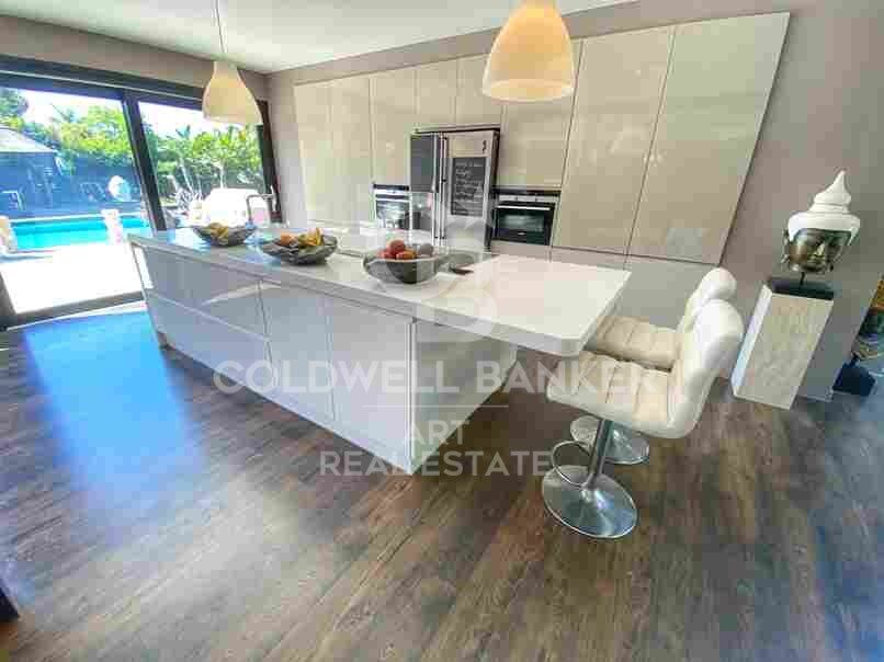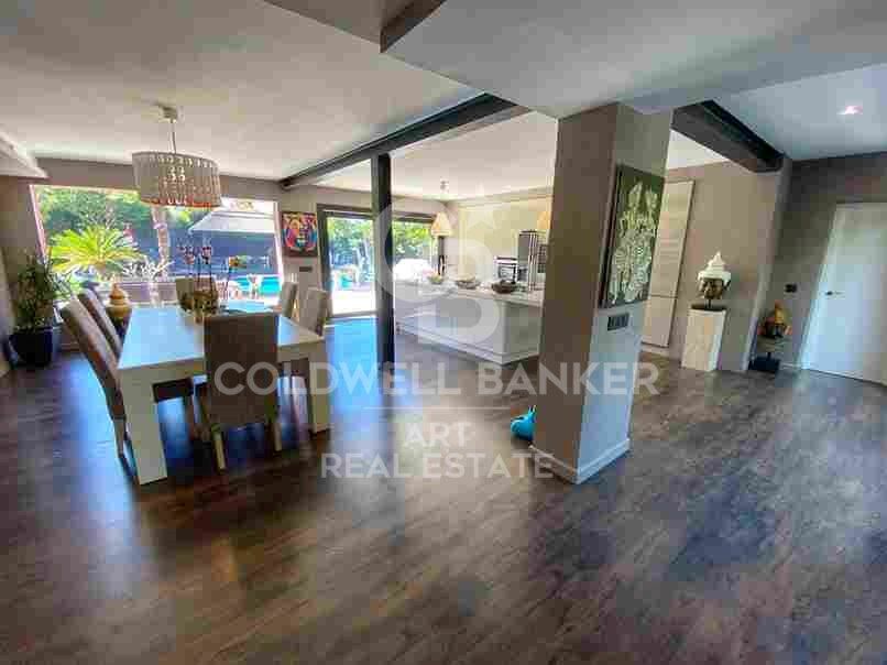 La propiedad se distingue por su luminosidad y sus vistas despejadas a un jardín exuberante. El amplio salón, con chimenea, se conecta armoniosamente con un elegante comedor y una cocina abierta de diseño, creando un espacio ideal para el confort diario y el entretenimiento.