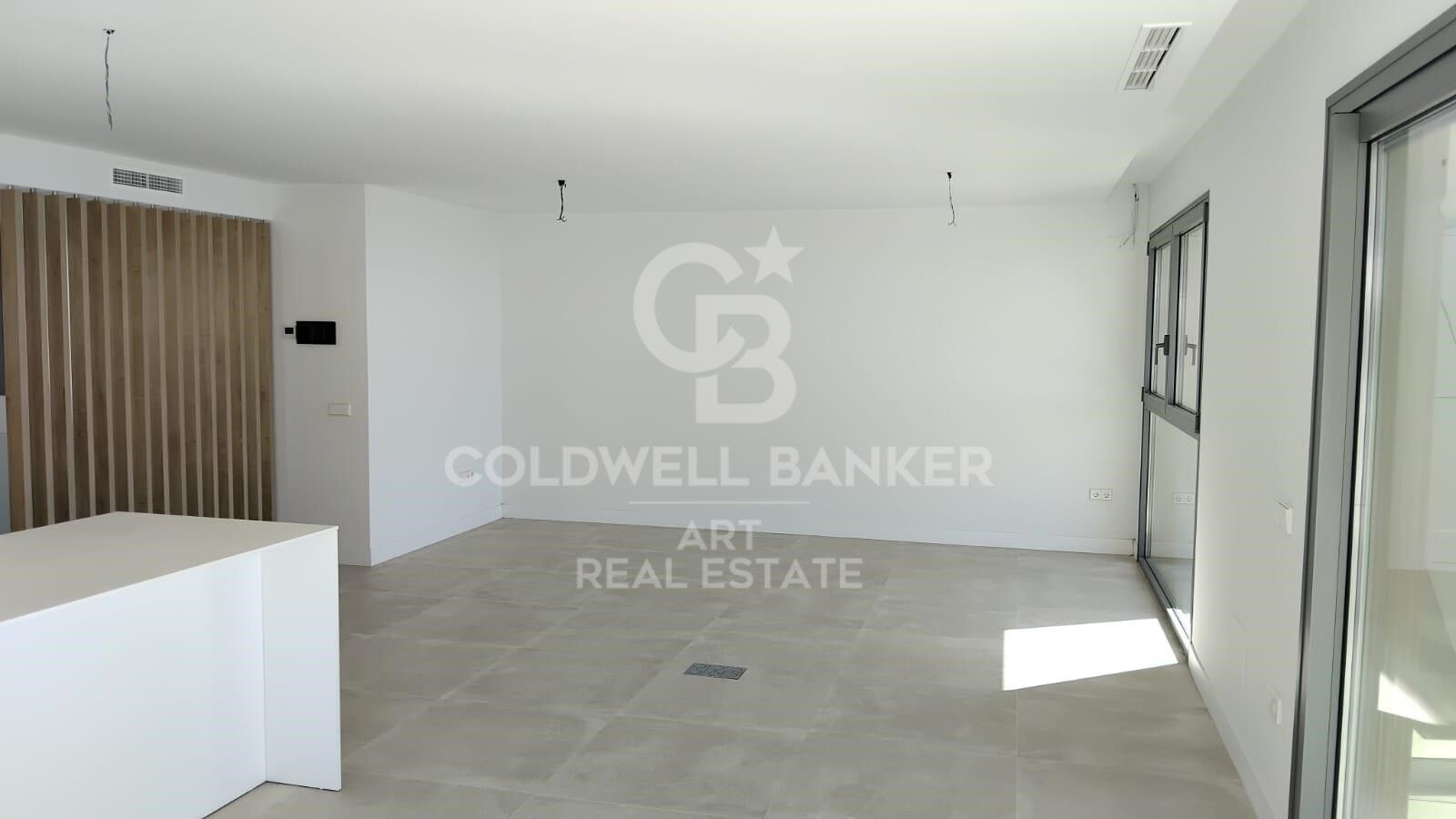 Estas lujosas viviendas de nueva construcción ofrecen amplios espacios interiores diseñados para el máximo confort. La cocina, completamente equipada y con una elegante barra de desayuno, se integra armoniosamente con el comedor y la sala de estar, creando un ambiente diáfano y acogedor. Las amplias puertas y ventanas triples permiten una abundante entrada de luz natural y brindan acceso directo a una generosa terraza parcialmente cubierta, perfecta para disfrutar del clima mediterráneo y de las espectaculares vistas al mar.