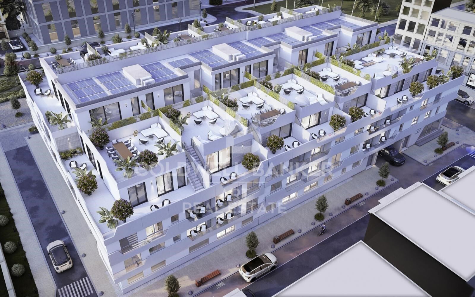 El complejo consta de 58 apartamentos de 1, 2 y 3 dormitorios, así como hermosos áticos, plazas de aparcamiento subterráneas y trasteros. Está perfectamente ubicado, cerca de todo tipo de servicios, con acceso desde dos calles.
