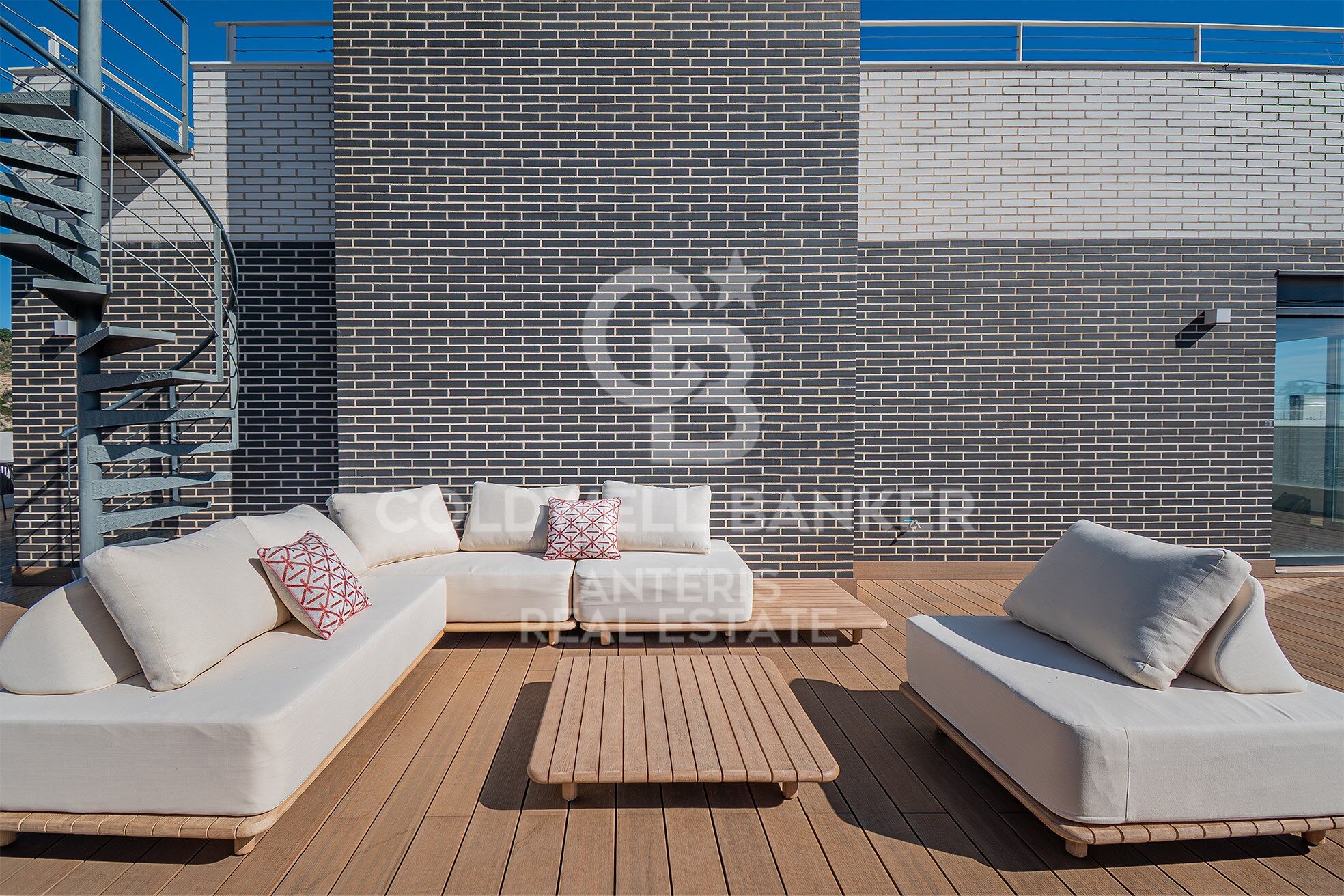 Esta propiedad, considerada la joya de la promoción, cuenta con dos magníficas terrazas que convierten la vida al aire libre en una experiencia diaria. La principal, de 136 m², rodea toda la vivienda y es accesible desde todas sus estancias, mientras que la superior, de 53 m², se comunica mediante unas escaleras exteriores y ofrece vistas panorámicas al horizonte. Espacios perfectos para disfrutar del sol, organizar encuentros o simplemente relajarse.