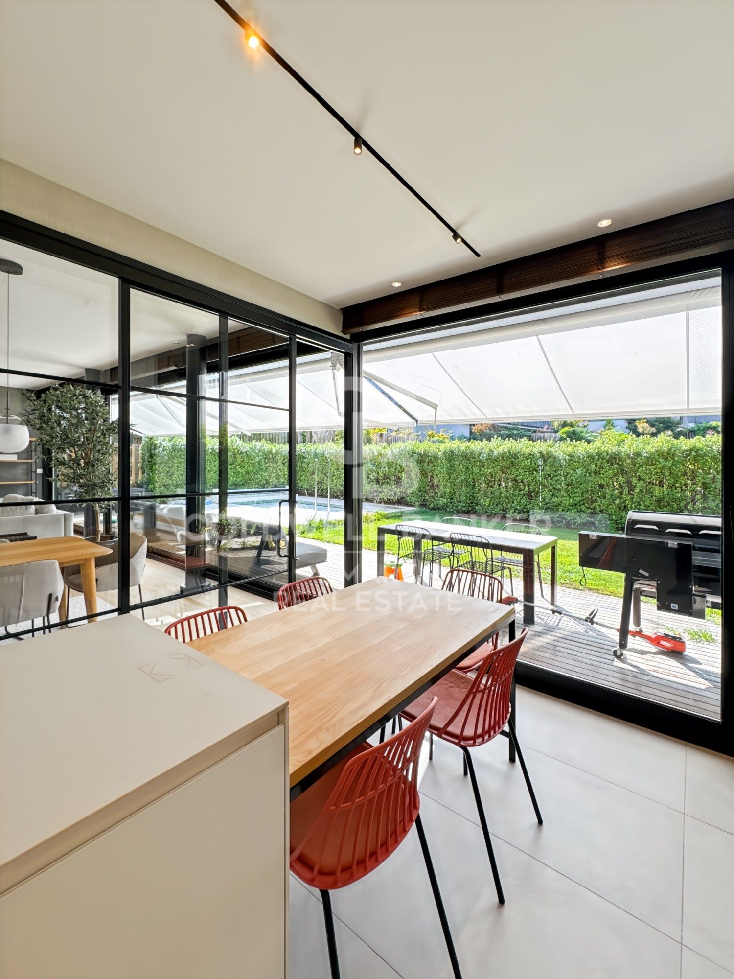 En el exterior, la vivienda cuenta con un porche cubierto, jardín privado y una piscina propia.