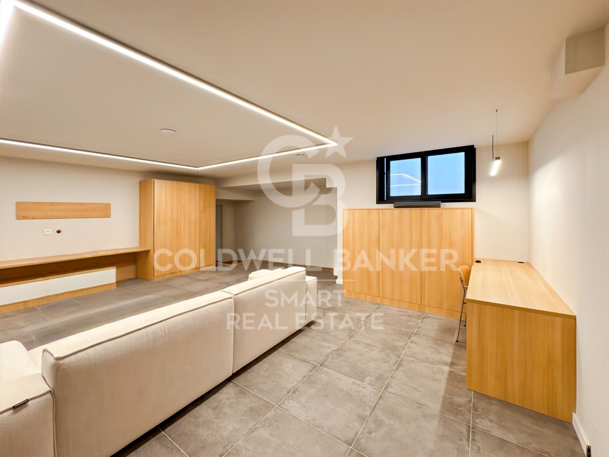 El sótano alberga una gran sala diáfana, ideal como zona de juegos, sala de cine o gimnasio, además del lavadero. Cuenta con tres plazas de garaje y trastero.