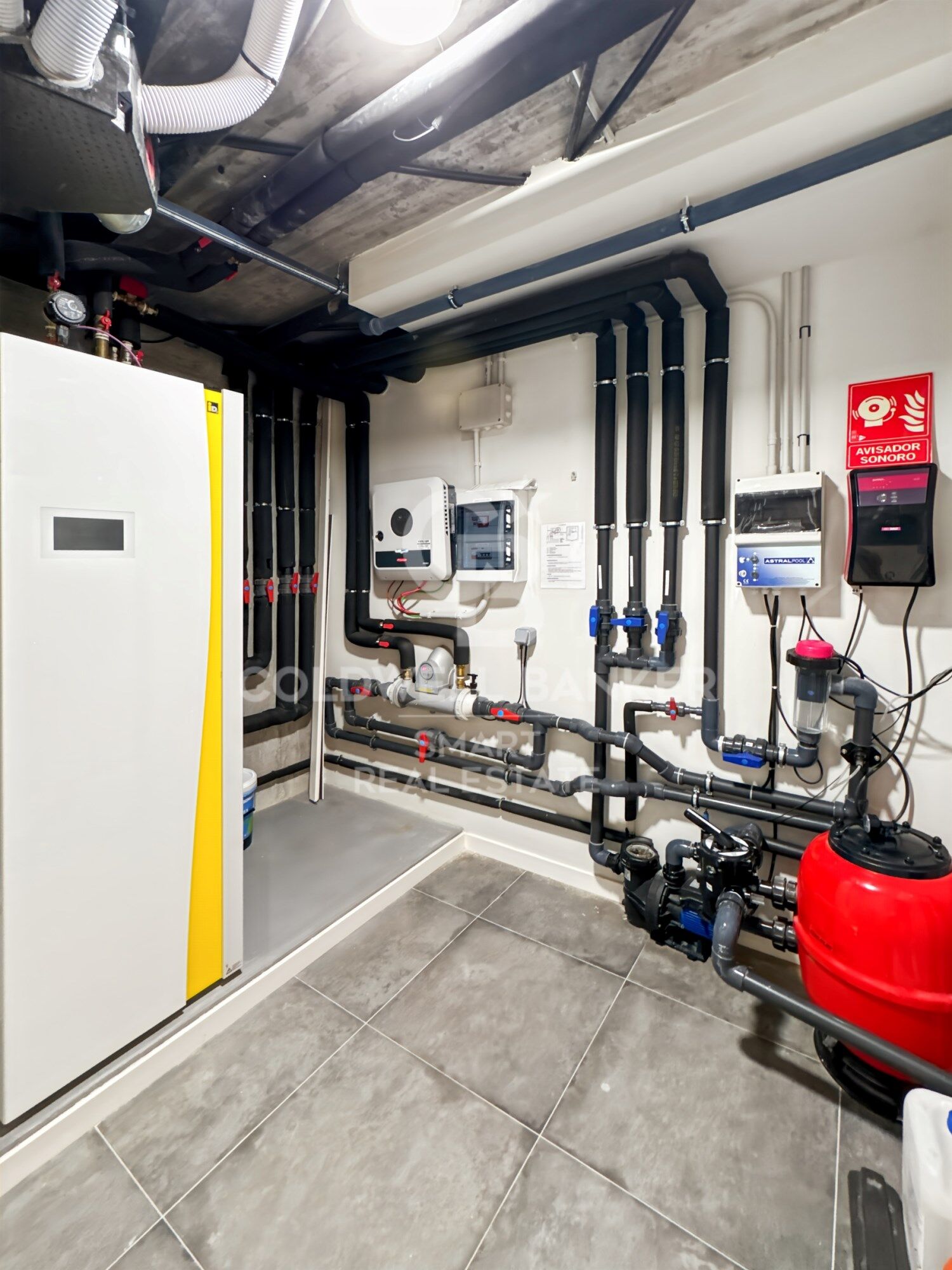 Este chalet destaca por sus excelentes calidades y su alto nivel de eficiencia energética. Dispone de bomba de calor para calefacción y agua caliente sanitaria, complementada con paneles solares fotovoltaicos. Además, toda la vivienda cuenta con suelo radiante para un confort térmico óptimo durante todo el año.