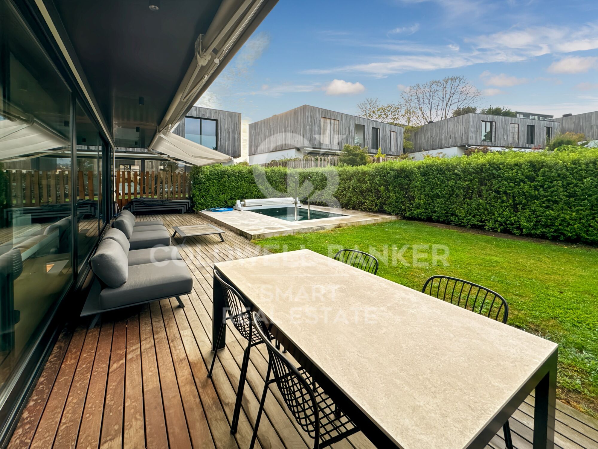 En el exterior, la vivienda cuenta con un porche cubierto, jardín privado y una piscina propia.