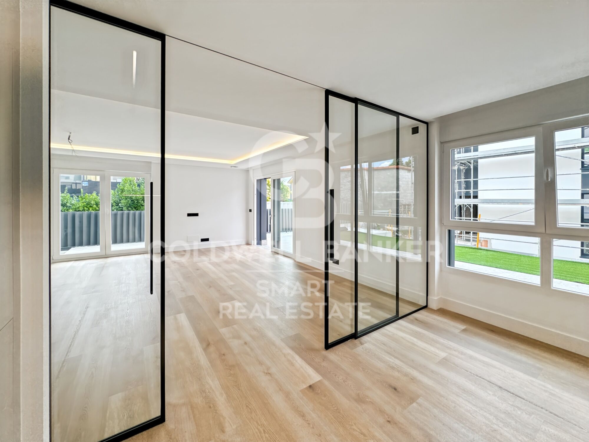 En la planta baja encontrarás un amplio y luminoso salón-comedor con cocina americana (marca Santos y electrodomésticos gama alta de Siemens) pero separada con salida al porche, una habitación y un baño completo con griferías en negro de Hansgrohe. La planta superior ofrece tres dormitorios, el principal con baño en suite y vestidor, además de otro baño completo.