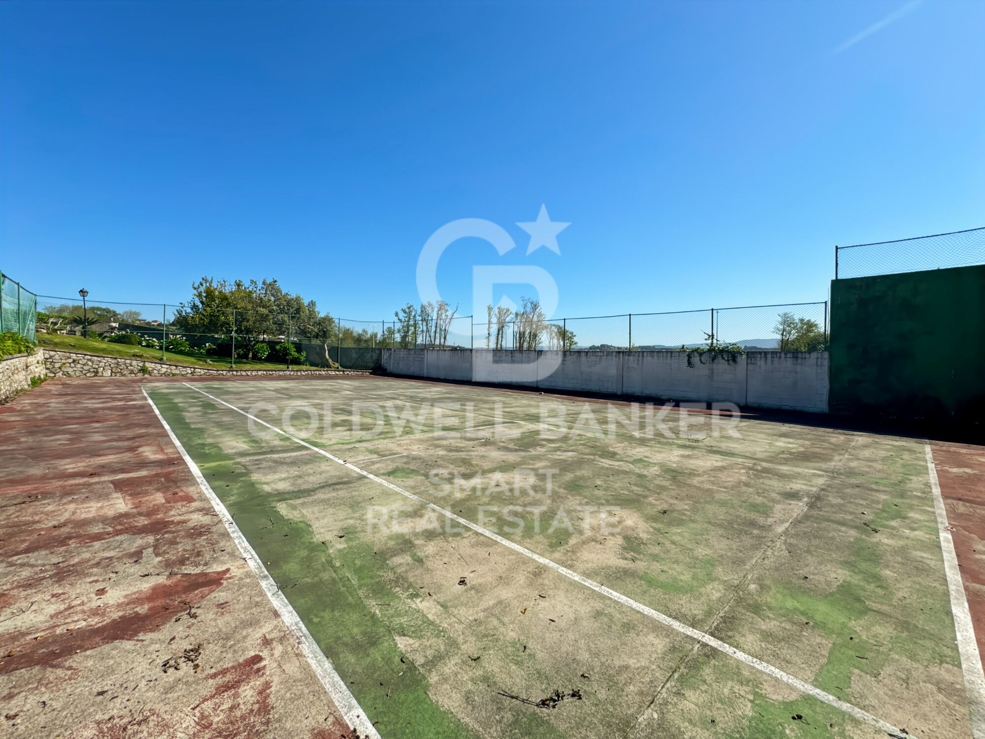 El exterior es espectacular: piscina privada, zona de comedor con barbacoa, cuarto de baño, vestuarios, una pista de tenis, zona de huerto, perrera y un galpón.