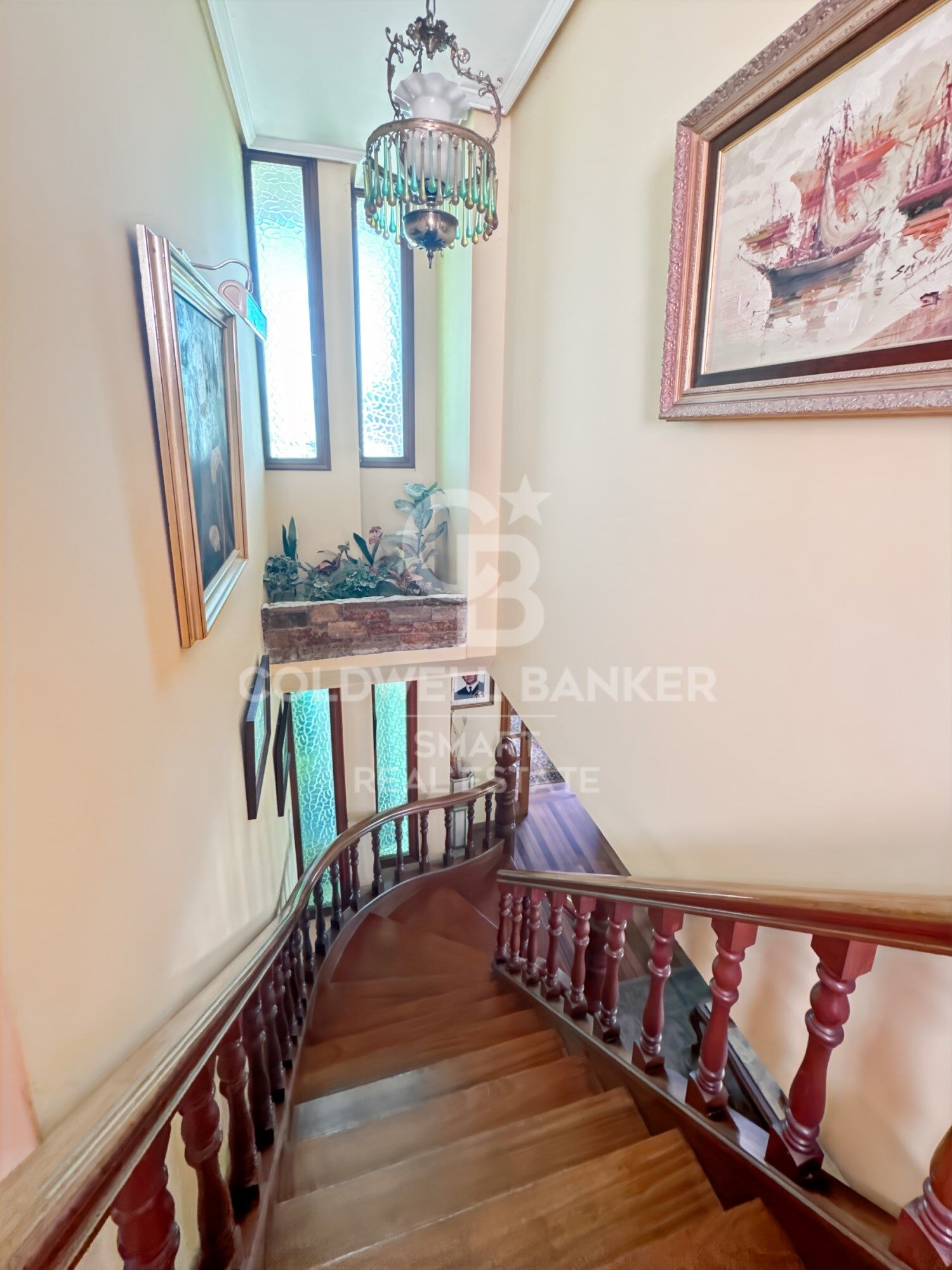 Subiendo por una elegante escalera de madera accedemos a la primera planta, que cuenta con tres dormitorios tipo suite, uno de ellos con vestidor. Desde un pequeño estudio se accede mediante una escalera de caracol al bajo cubierta, donde hay dos dormitorios adicionales y un baño compartido.