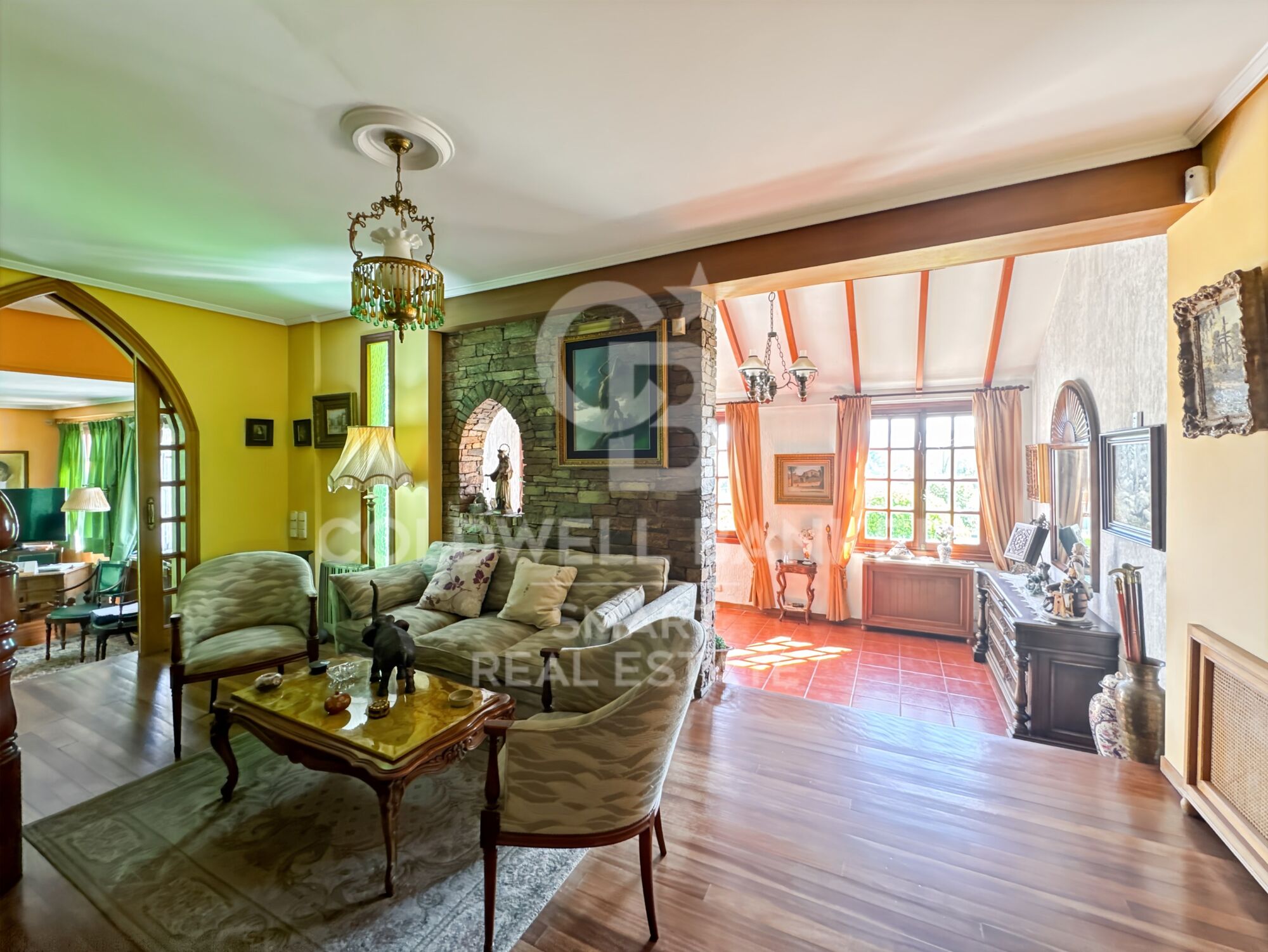 La vivienda se distribuye en varias plantas. En el semisótano encontramos una cocina rústica con horno de piedra, una acogedora bodega, gimnasio, un gran salón para reuniones y el garaje, que se comunica directamente con la casa.