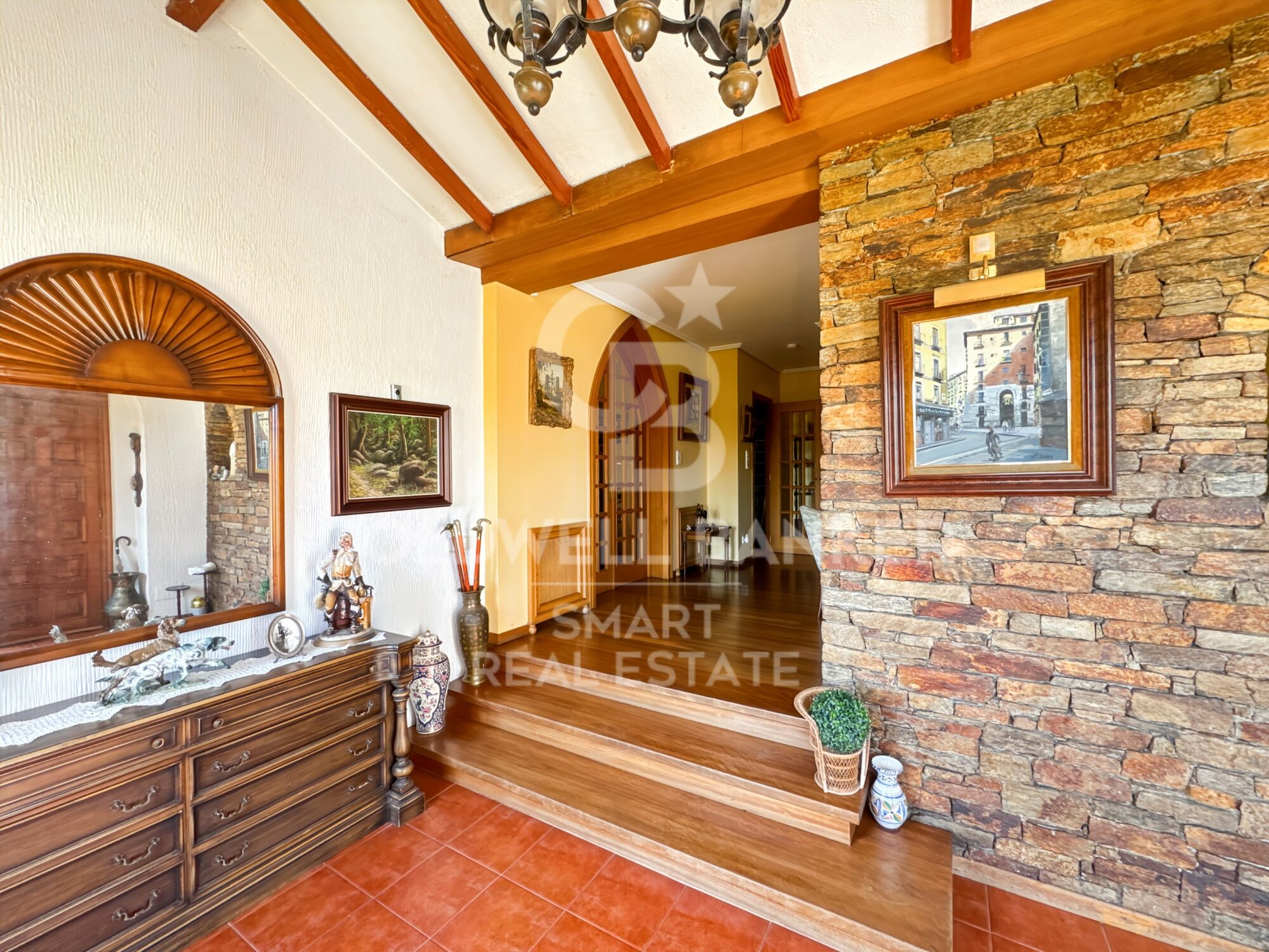 La vivienda se distribuye en varias plantas. En el semisótano encontramos una cocina rústica con horno de piedra, una acogedora bodega, gimnasio, un gran salón para reuniones y el garaje, que se comunica directamente con la casa.