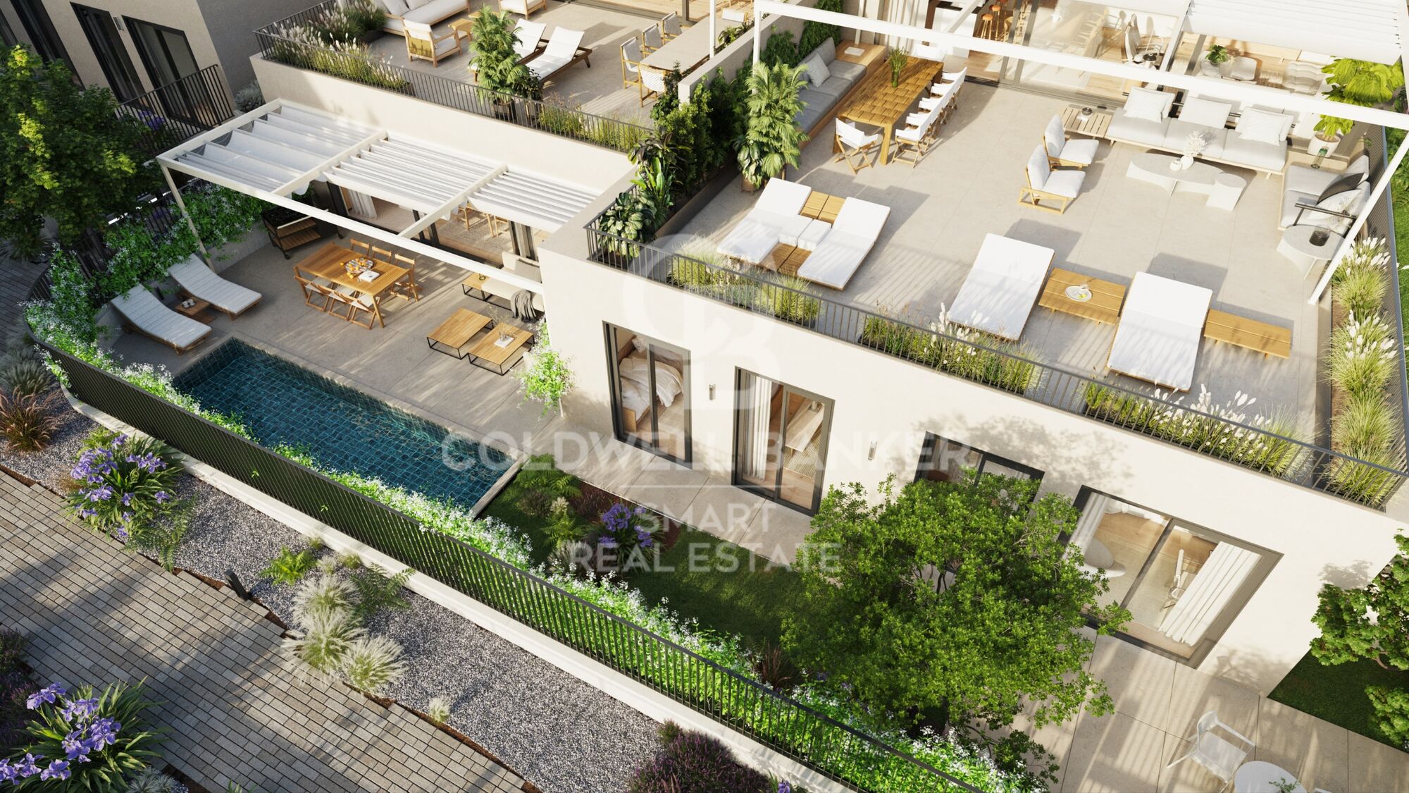 12 dúplex de 140 m2 con azotea de 60 m2, 8 viviendas de hasta 145 m2 con terrazas de 60 a 120 m2, y 5 viviendas en bajo con jardín de 150 m2.
