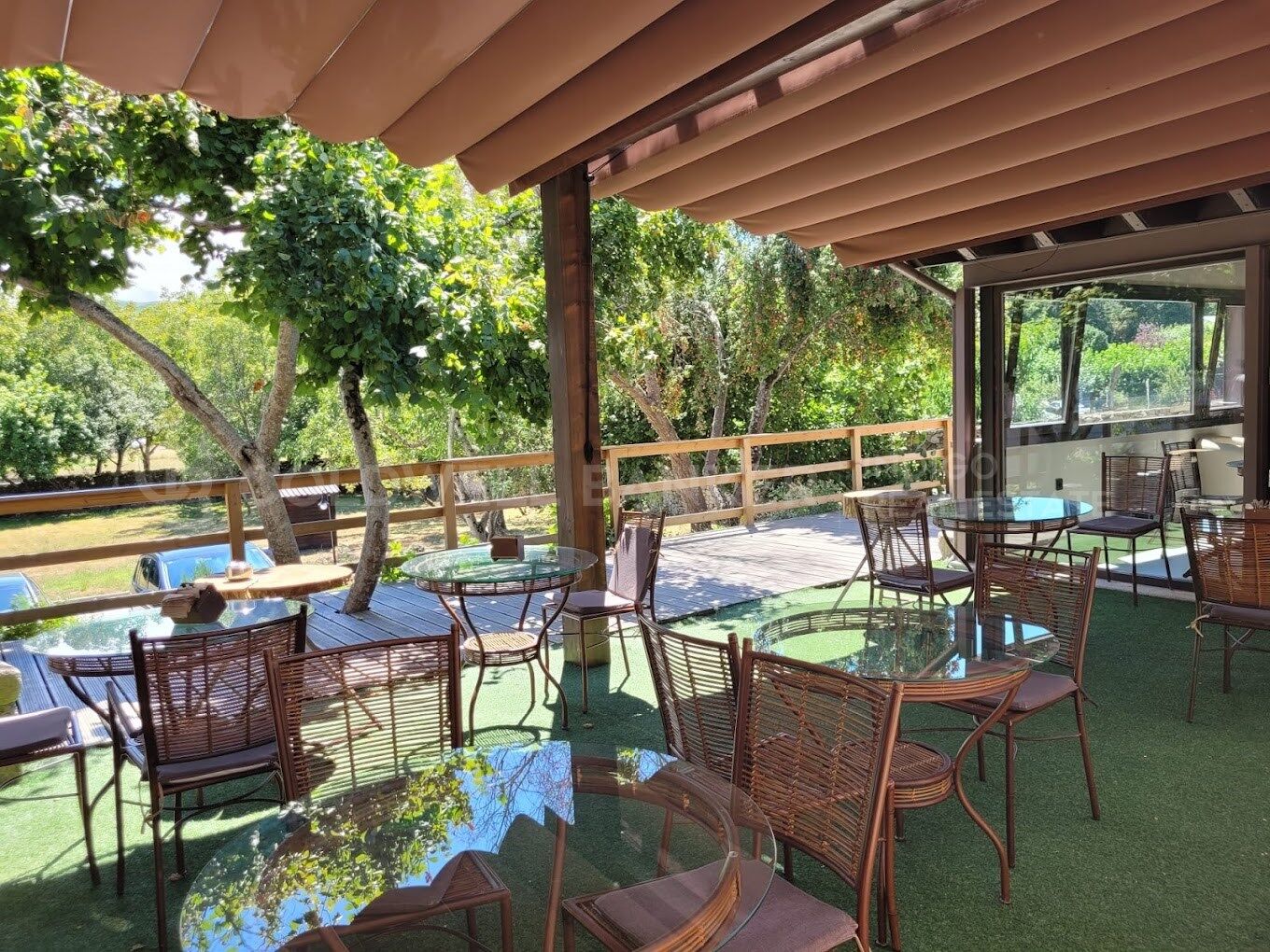 Para disfrutar los días soleados la fantástica terraza suma 10 mesas más. Techada con cristal y una mitad retráctil para tener sombra cuando se desea.
